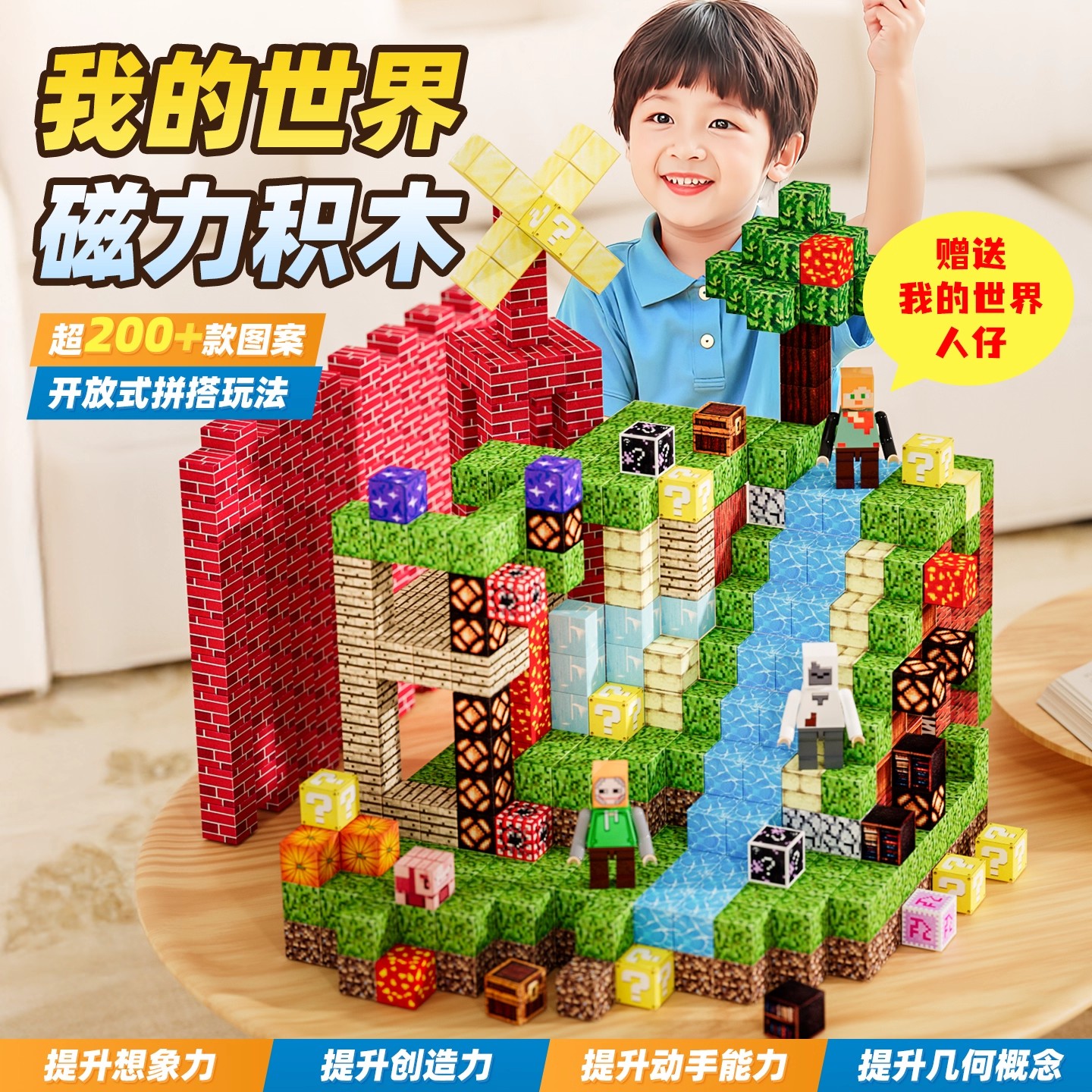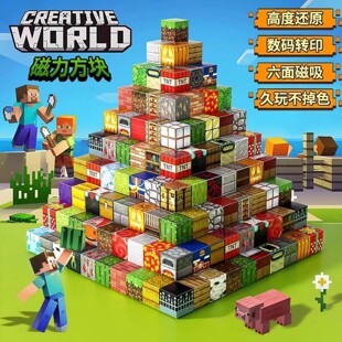 磁铁吸积木拼图儿童益智玩具男女孩 拼装 我 世界磁力方块全套正版
