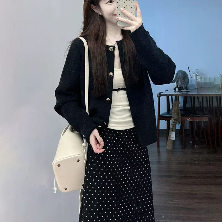 早秋气质穿搭一整套韩系chic温柔风减龄毛衣开衫 女 半身裙两件套装