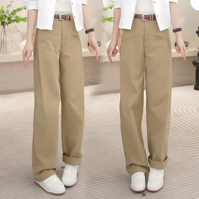 高级宽松bf慵懒垂感直筒加绒休闲阔腿裤 2025新款 子女春秋季 糯米裤