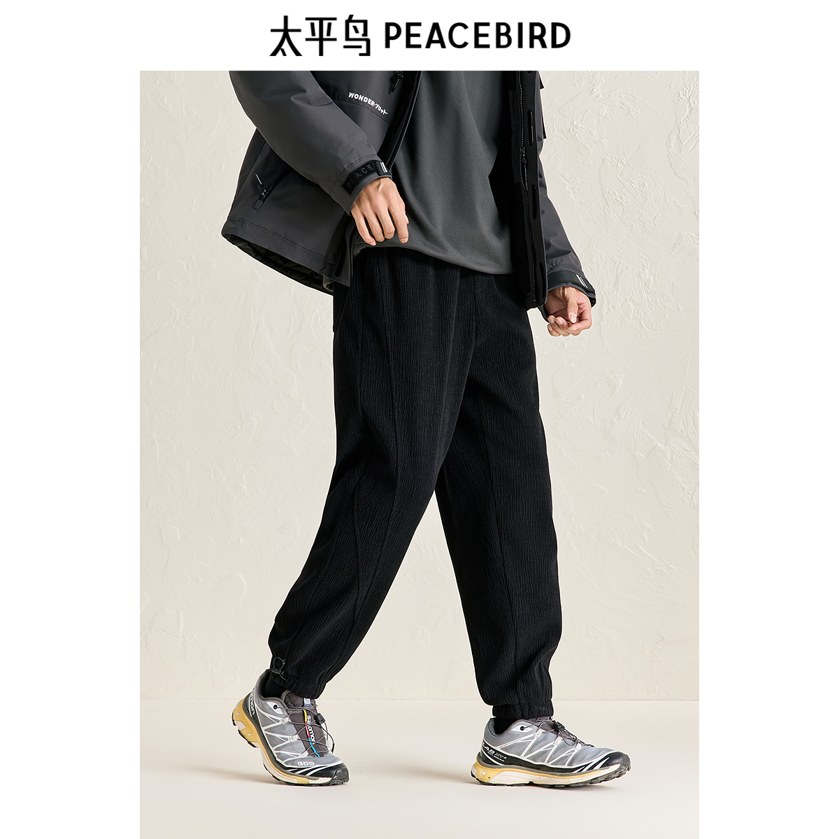 绒感肌理刺绣保暖长裤 太平鸟男装 质感束脚锥形裤 冬季 黑Y 休闲裤