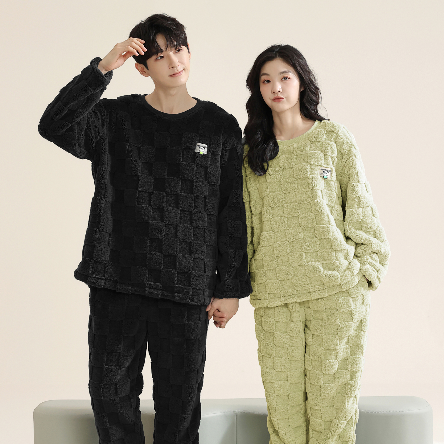 2025新款 女士法兰绒家居服男套装 加绒加厚珊瑚绒大码 情侣睡衣冬季