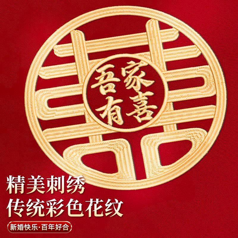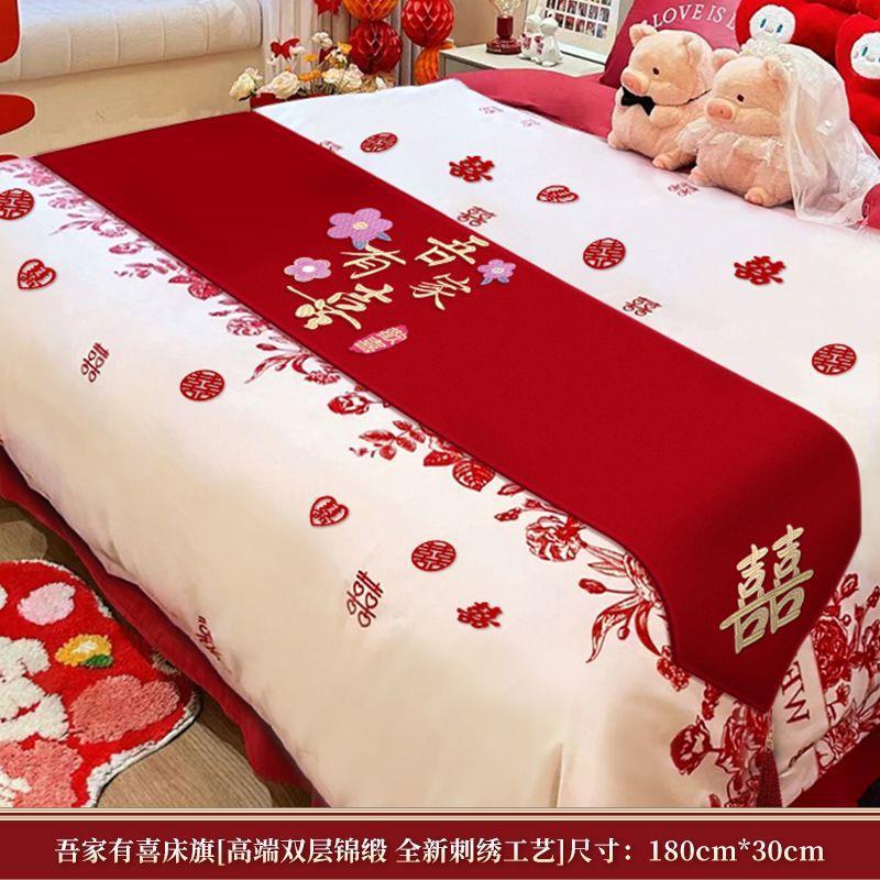 中式 刺绣盖布婚庆喜字茶几垫布床旗 结婚红色桌旗喜庆茶桌布新中式