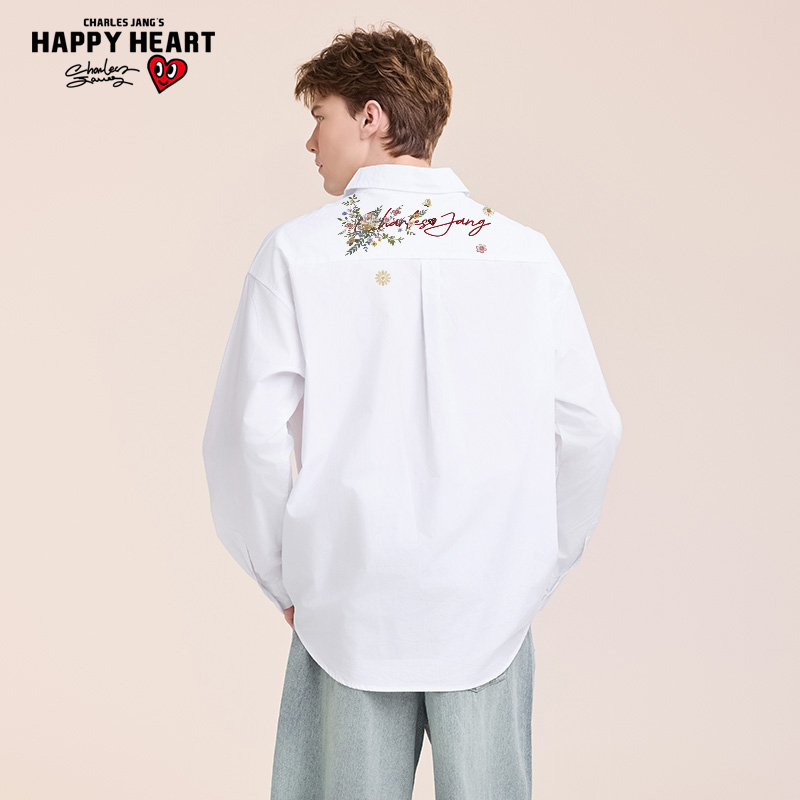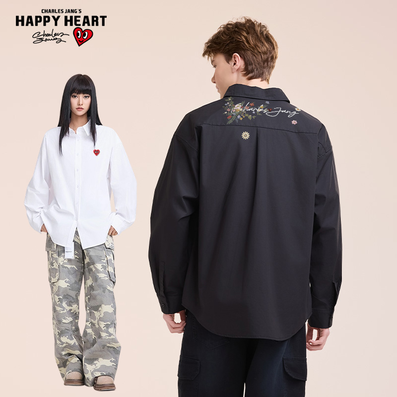 花卉印花衬衫 查尔斯桃心 纯棉翻领情侣休闲风外套 吉杰推荐