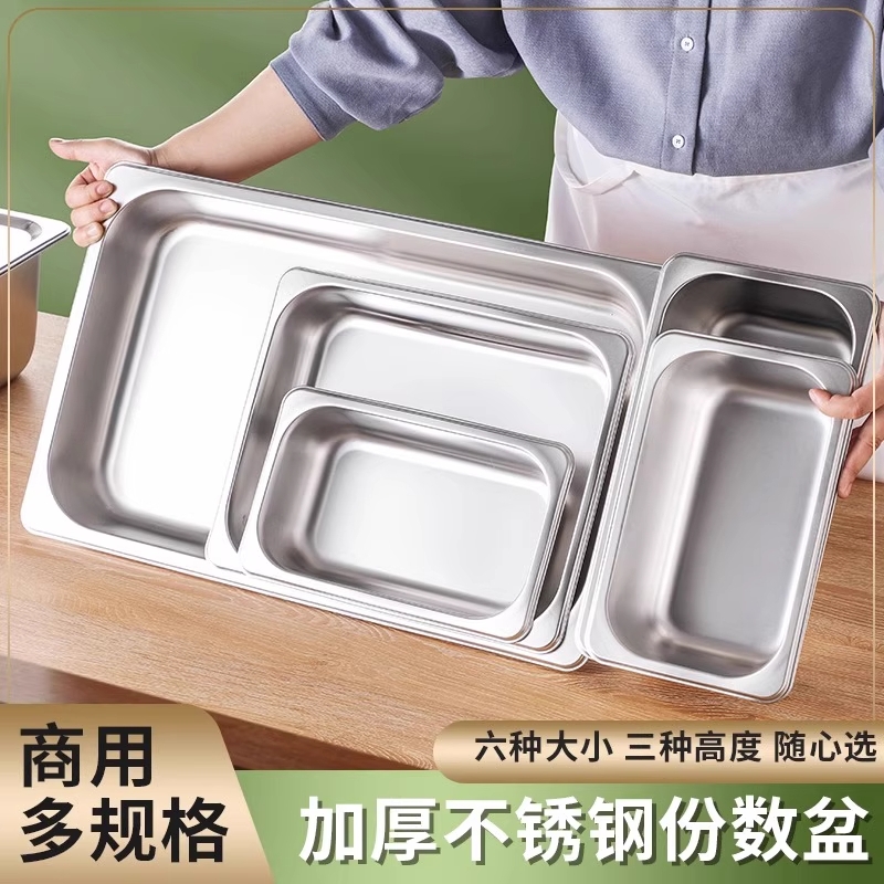 304不锈钢份数盆盒子分数盒餐盆食堂打菜盆盛菜盆长方形麻辣烫