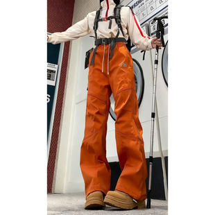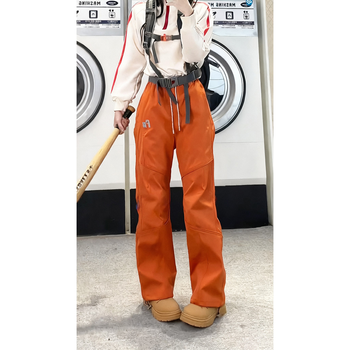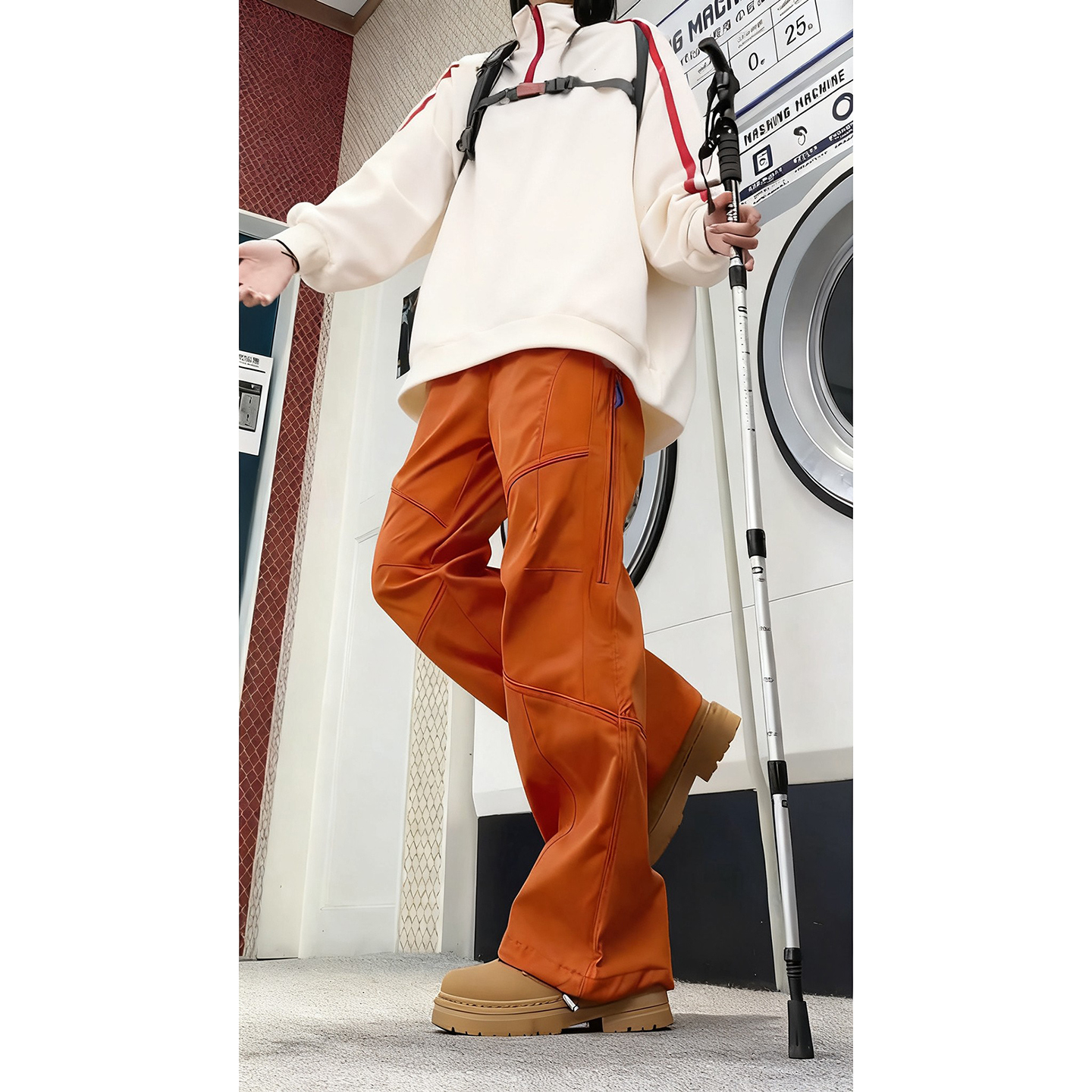 子三防加绒登山裤 裤 男女秋冬户外机能风工装 多巴胺橘色软壳冲锋裤