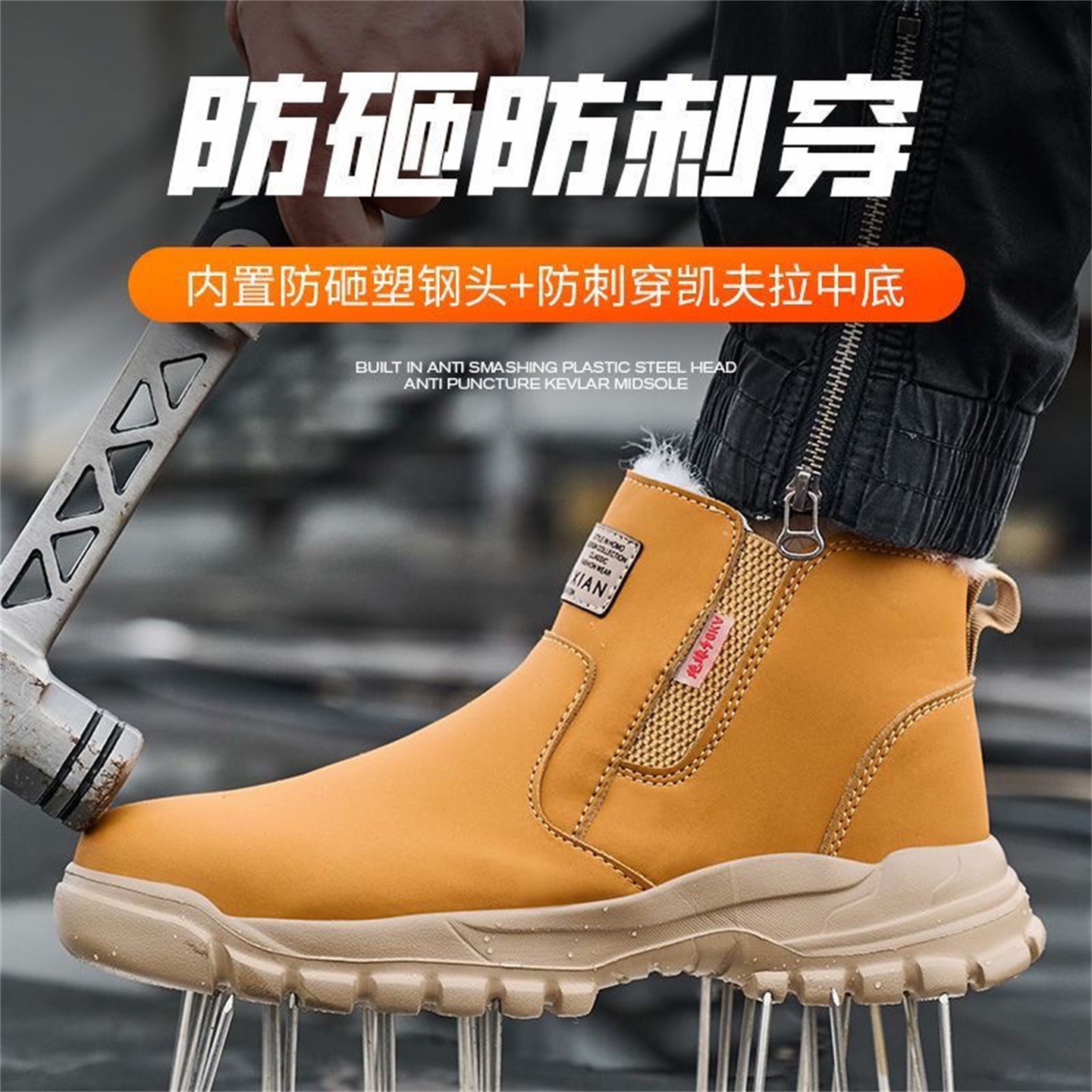 高帮防水羊毛加绒绝缘工作棉靴 士防砸防刺穿塑钢头冬季 劳保鞋 男款
