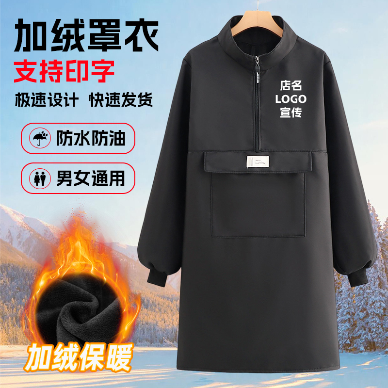 上衣 工作服男士 罩衣大人女冬季 加绒加厚防水防油家用厨房围裙长袖