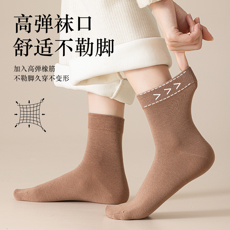 长袜 白色搭配拖鞋 无骨袜子女春秋款 中筒袜纯棉防臭堆堆月子袜夏季