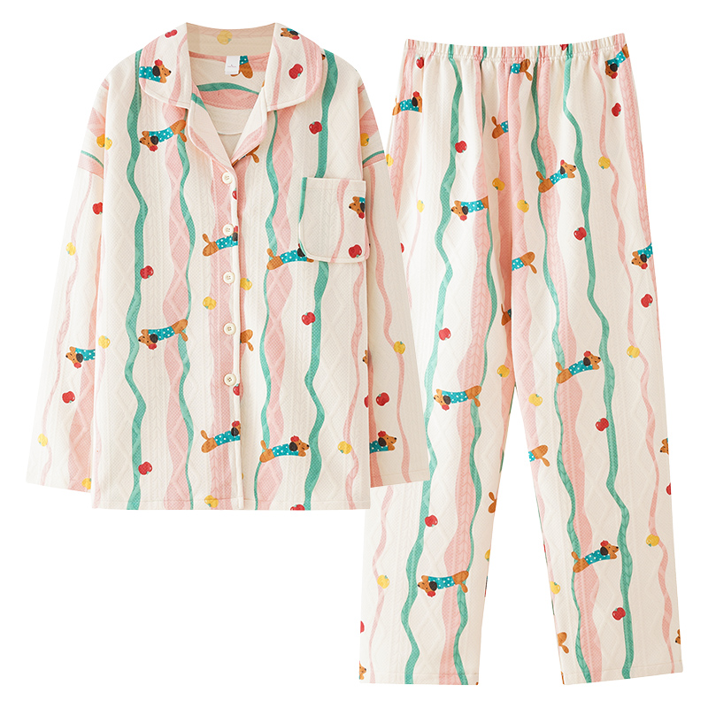 猫人空气棉夹层睡衣女士秋冬季 加绒保暖卡通翻领可外穿家居服套装