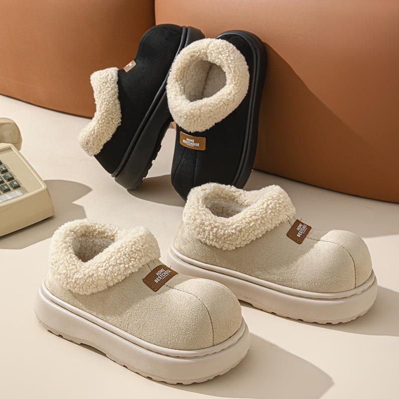 外穿毛绒保暖情侣棉鞋 包跟棉拖鞋 家居厚底月子鞋 2024新款 男 女冬季