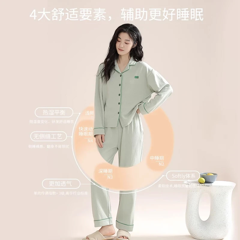 可外穿夏季 纯棉睡衣女春秋款 全棉女士家居服套装 2025新款 长袖