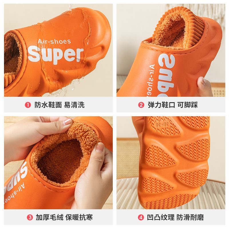 毛绒一体防水防滑居家外穿保暖毛毛鞋 2025新款 男 女冬季 包跟棉拖鞋