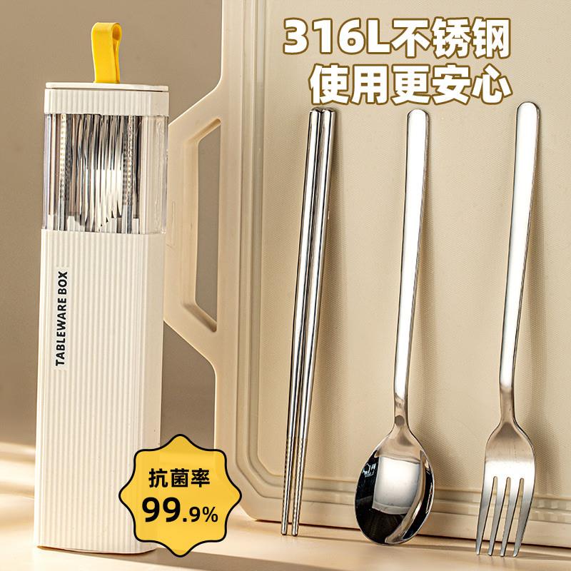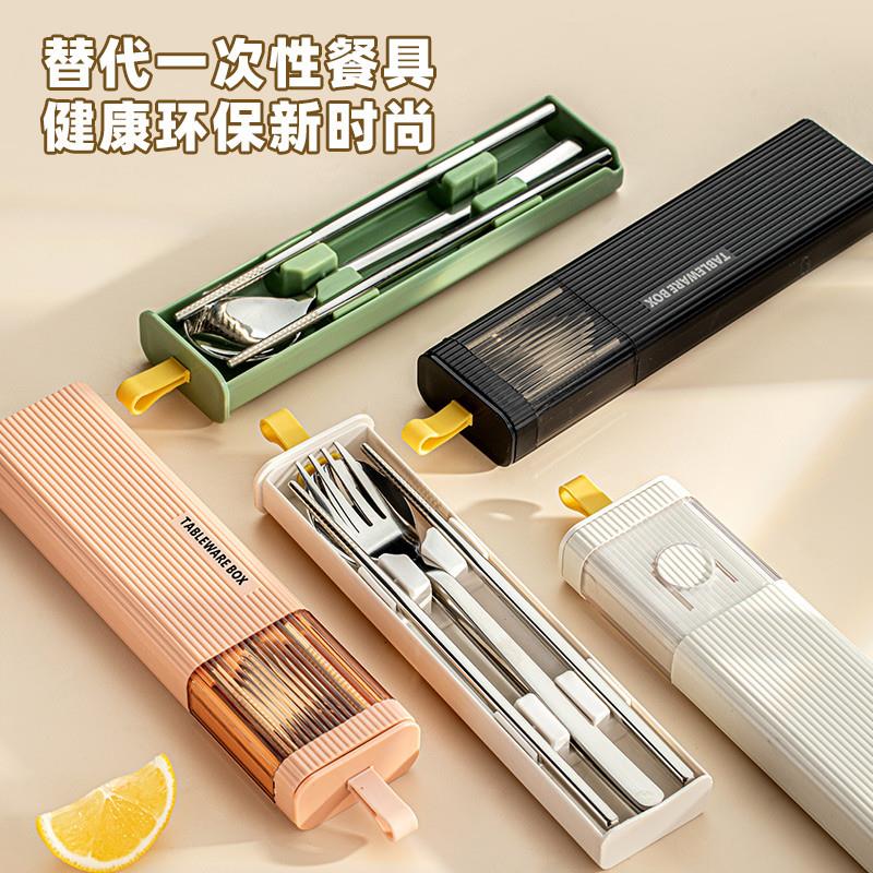 一人一筷便携不锈钢餐具三件套 收纳盒筷子套装 小学生装 筷子勺子