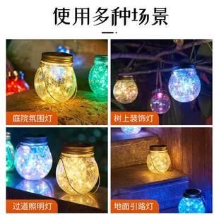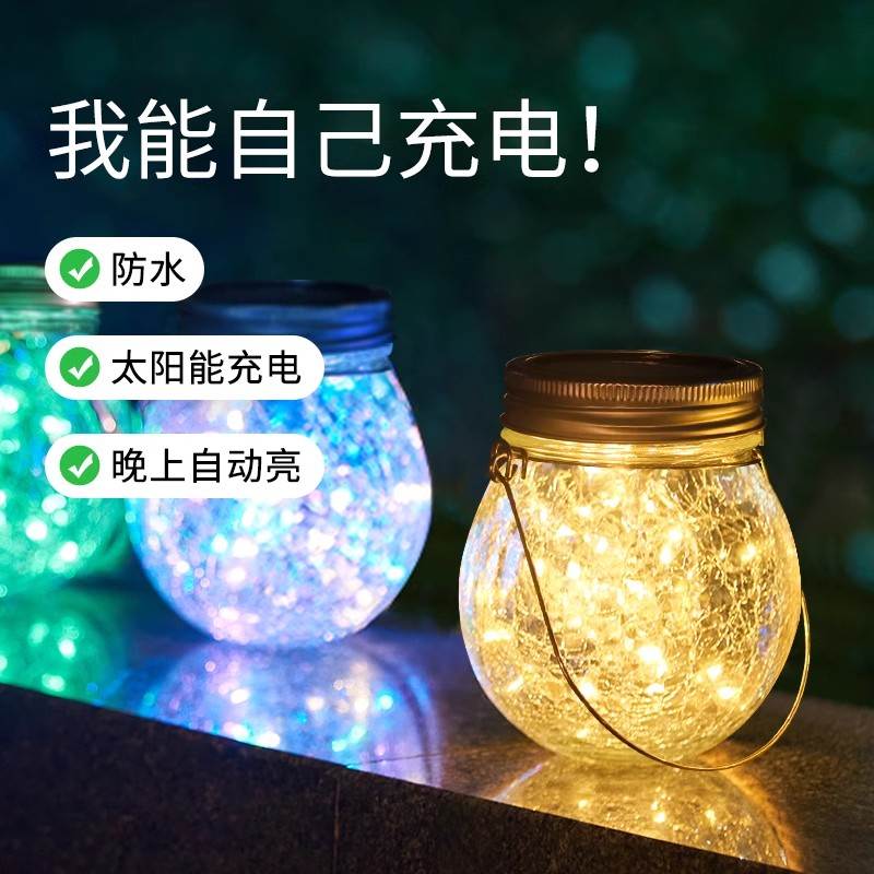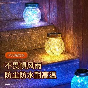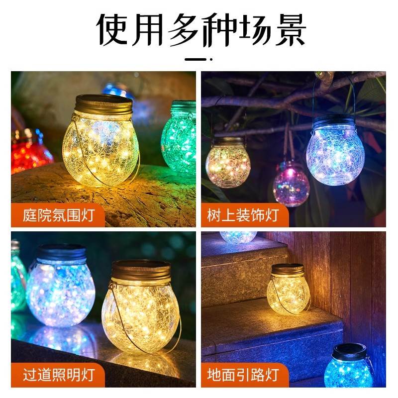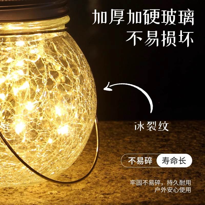 太阳能裂纹灯星空许愿挂树灯梅森瓶庭院装 饰创意满天星户外阳台灯
