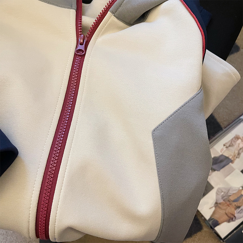 大码 复古撞色拼接运动学院风连帽卫衣男女秋冬情侣外套2 300斤美式