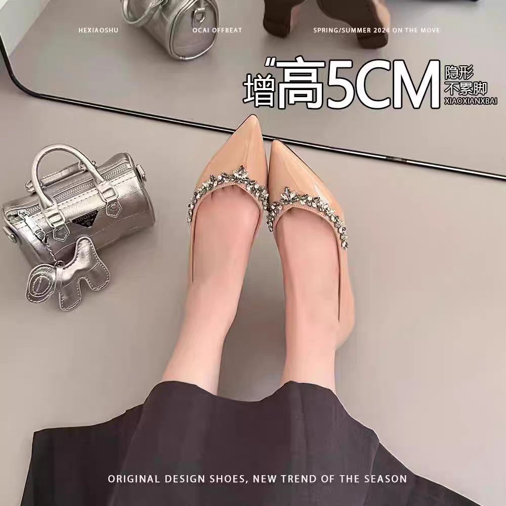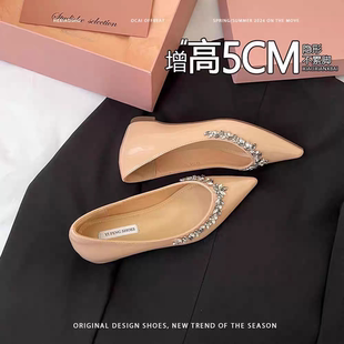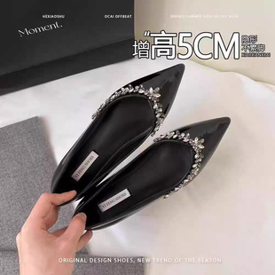 浅口鞋 内增高单鞋 复古水钻晚晚风尖头小个子法式 春秋季 女2025新款