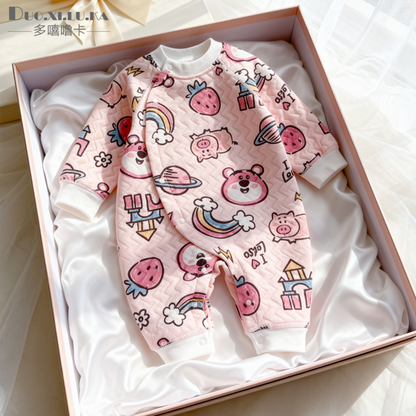 婴儿连体衣新生儿三层保暖纯棉无骨哈衣宝宝长袖 爬服 空气层秋冬款