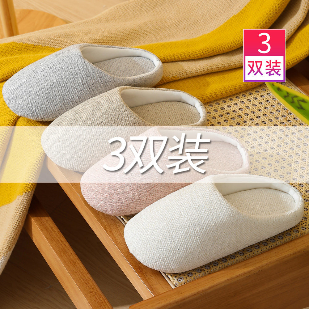 棉拖鞋 软底家居室内四季 待客防滑秋冬5 静音拖鞋 3双一家三口家庭装