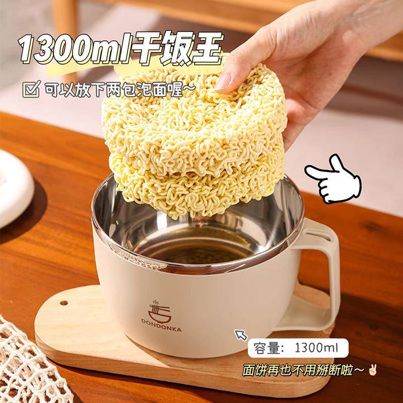 泡面碗宿舍学生带盖可沥水日式 泡面神器不锈钢食堂打饭方便面饭碗
