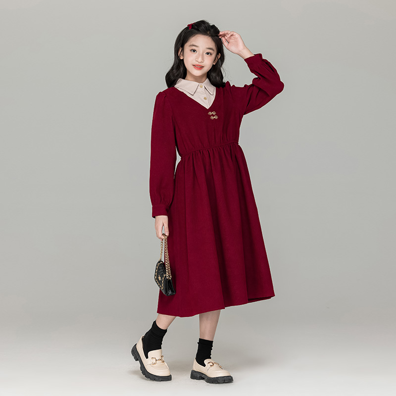 DPLAY2025秋季 气质复古红色连衣裙女方领回门服礼服订婚女长裙