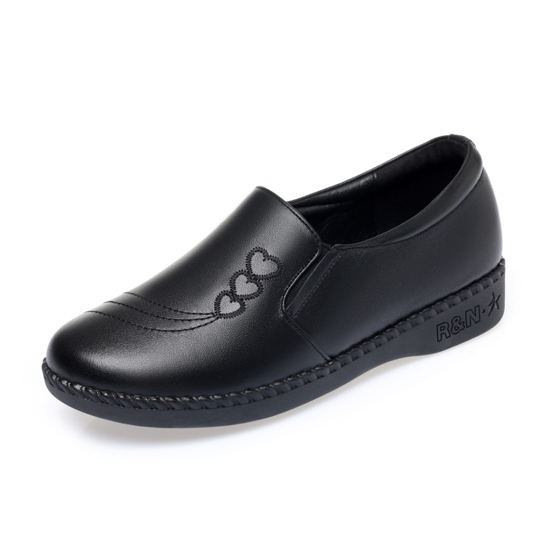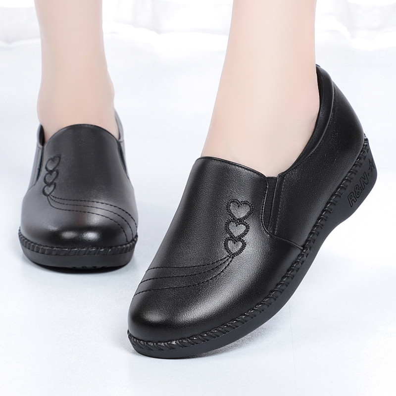 加绒单鞋 妈妈鞋 老人大码 一脚蹬牛皮平底中老年女士皮鞋 秋冬款