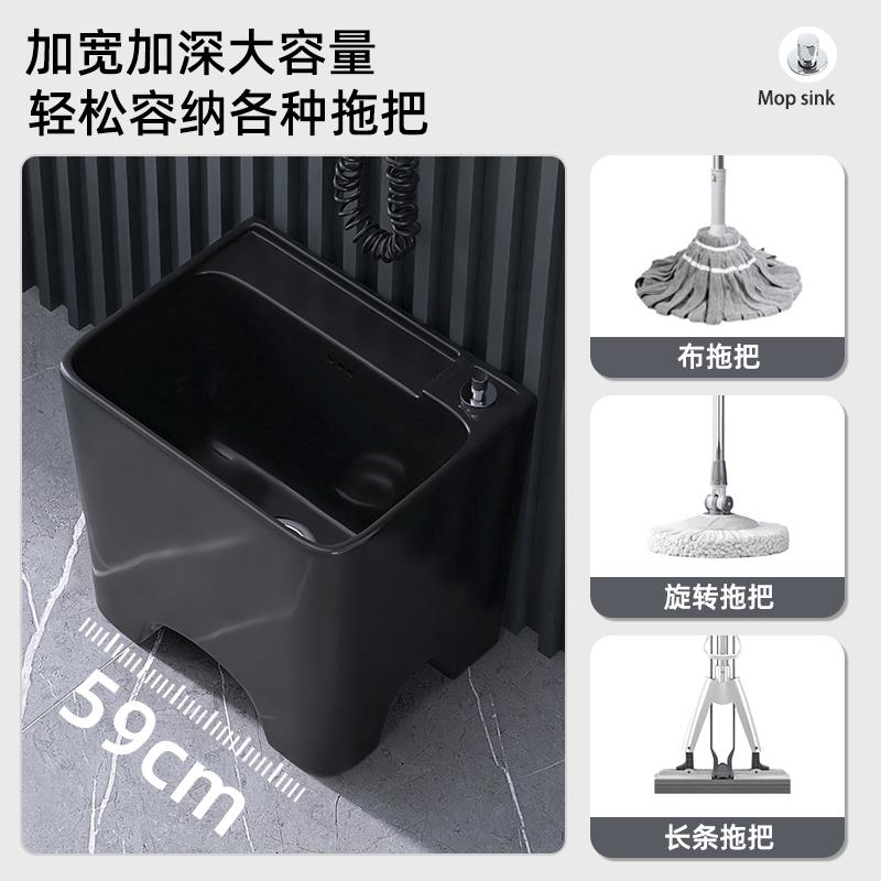 2025新款 家用黑色陶瓷拖把池阳台拖把盆卫生间洗拖布池高脚墩布池