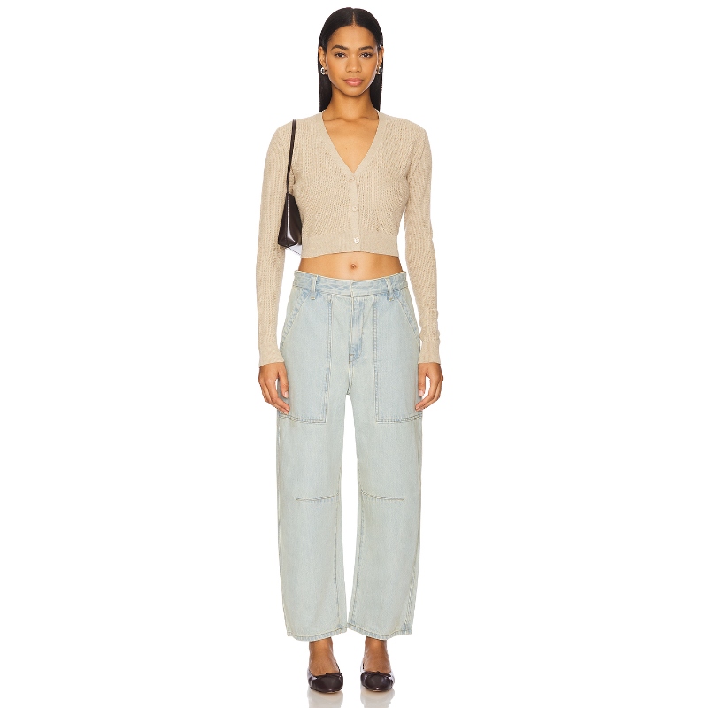 Enza Costa 米色轻薄针织衫 辣妹风开衫 新品 短款 REVOLVE小众 秋季