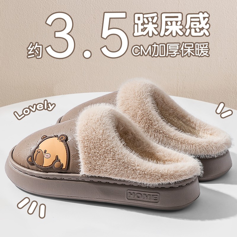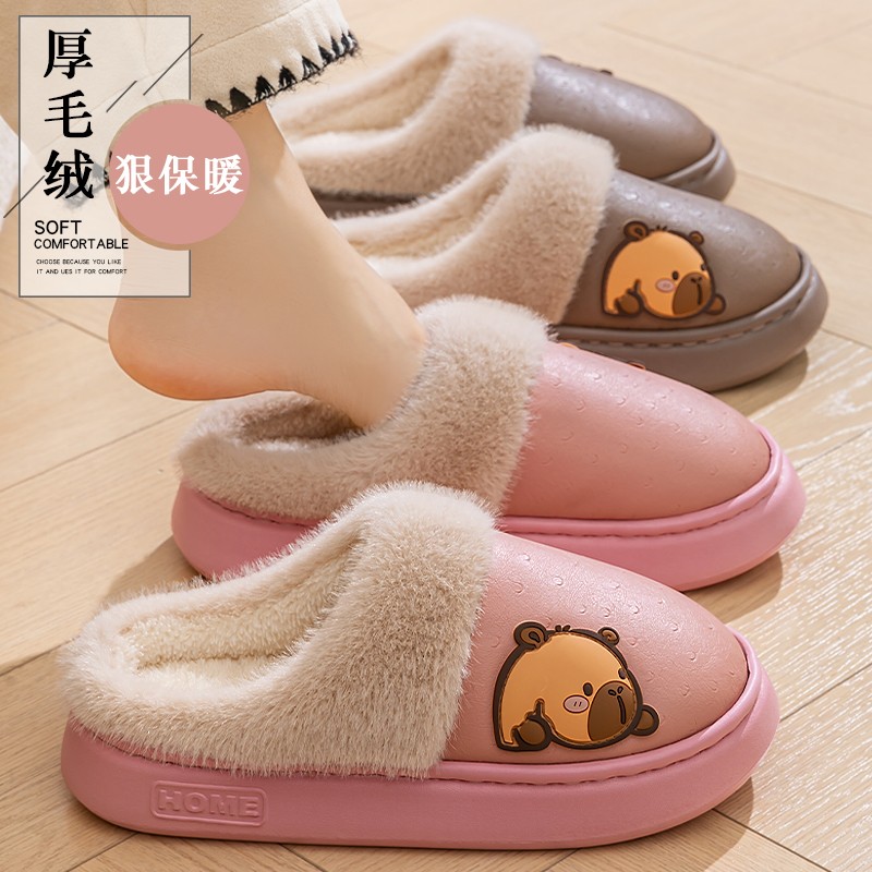 加绒保暖卡通防滑棉鞋 卡皮巴拉水豚女士室内秋冬季 新款 2025棉拖鞋