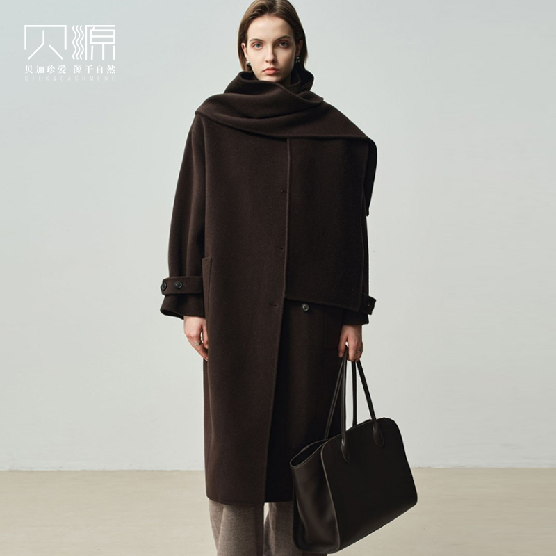 RUISHI芮时 重磅驼绒桑蚕丝羊毛慵懒两穿领毛呢大衣女秋冬外套女