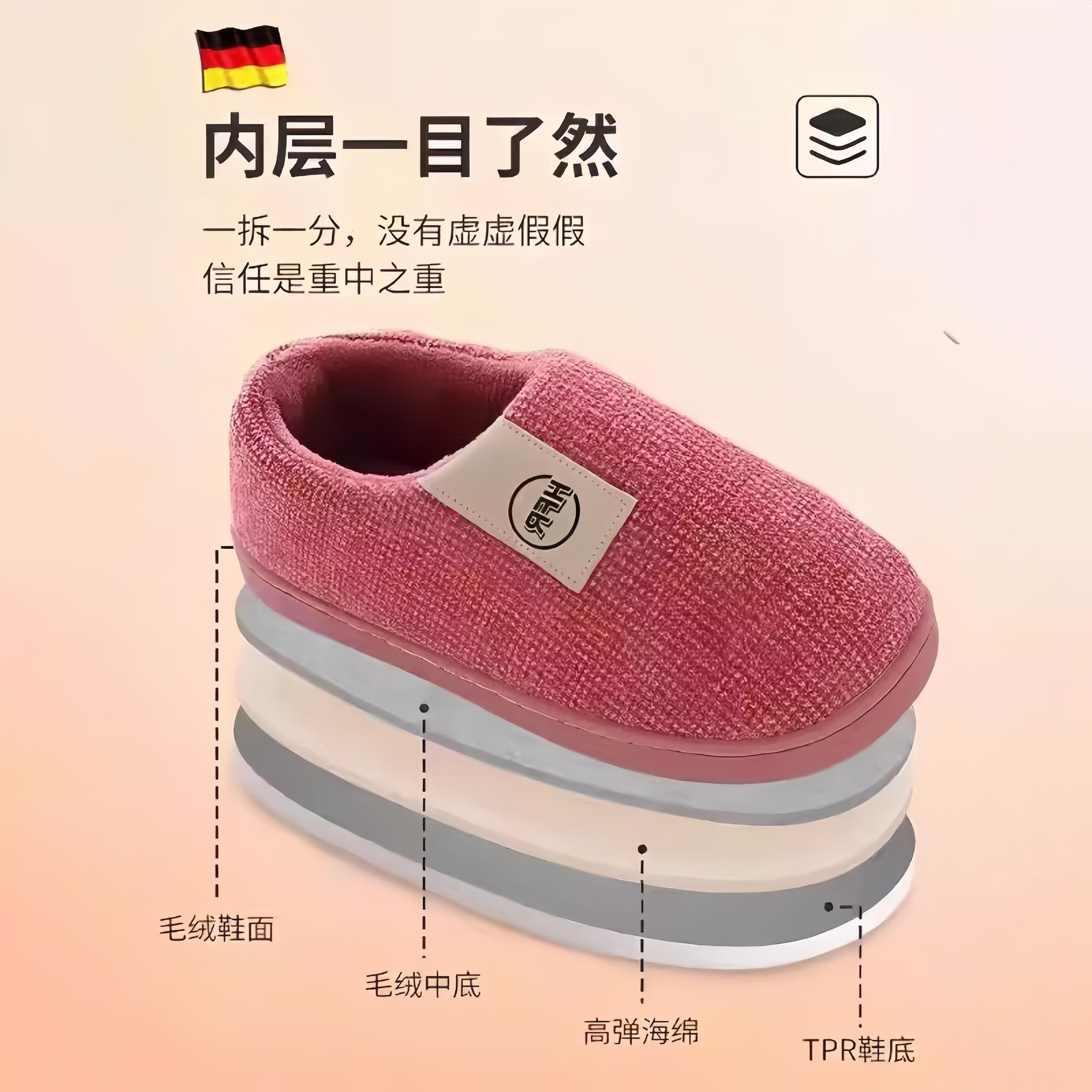 家用室内家居防滑加绒 中年大码 德国老人专用保暖棉拖鞋 包跟女冬季