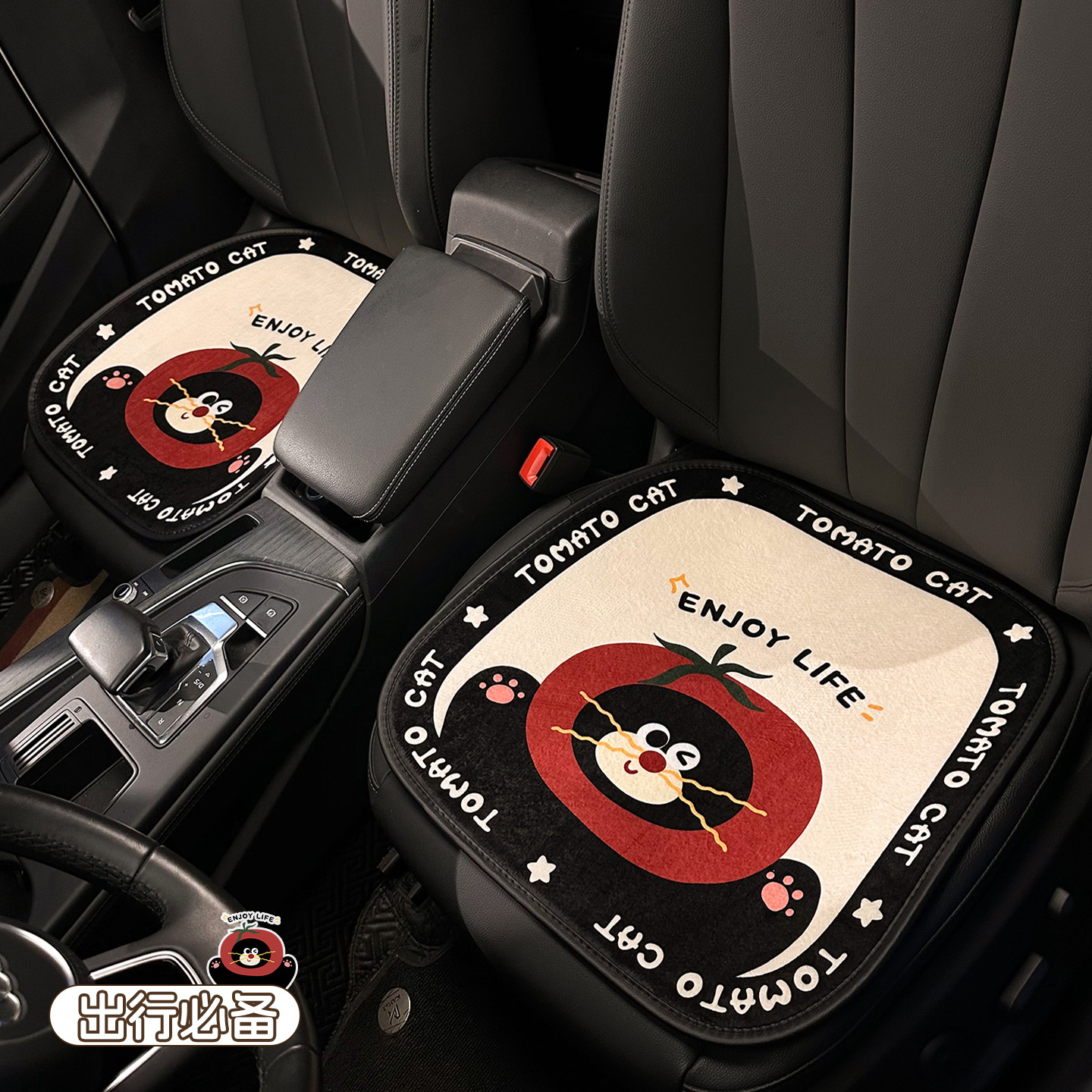 汽车坐垫冬季 毛绒可爱猫咪坐垫保暖加厚车内座椅套防滑车内坐套女