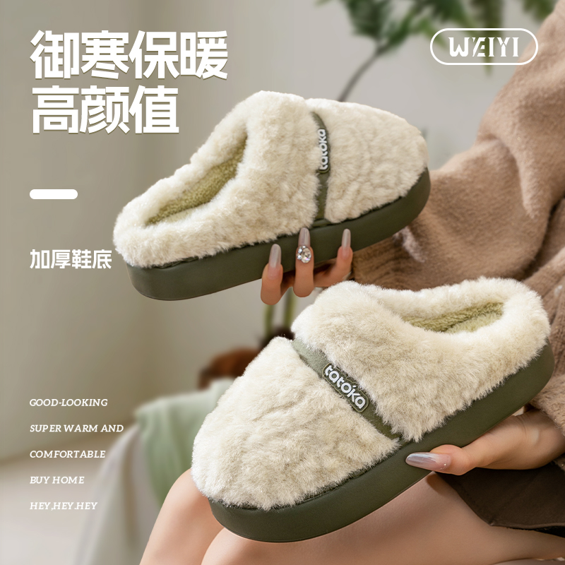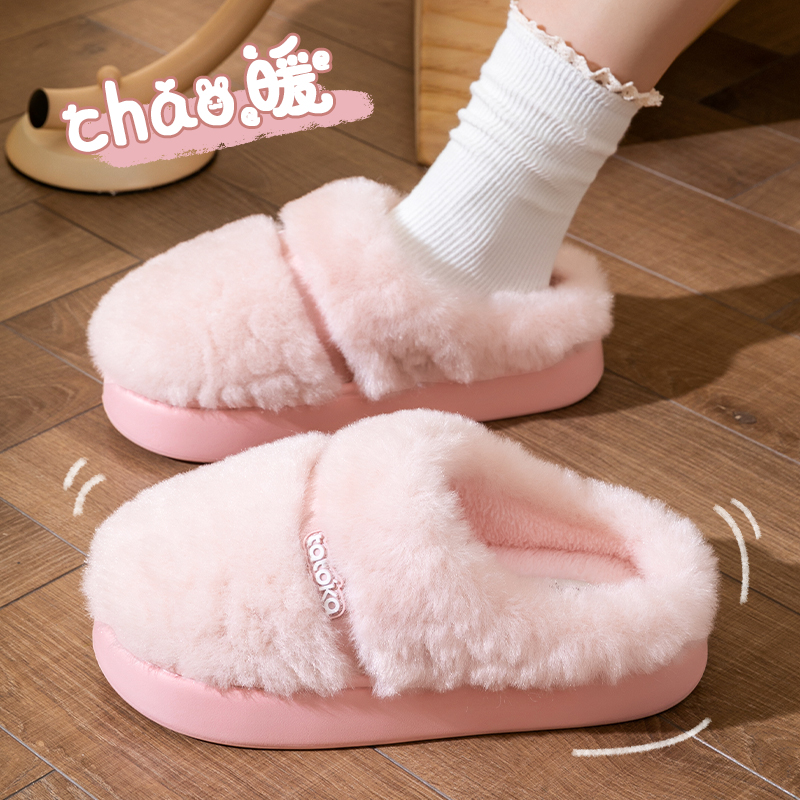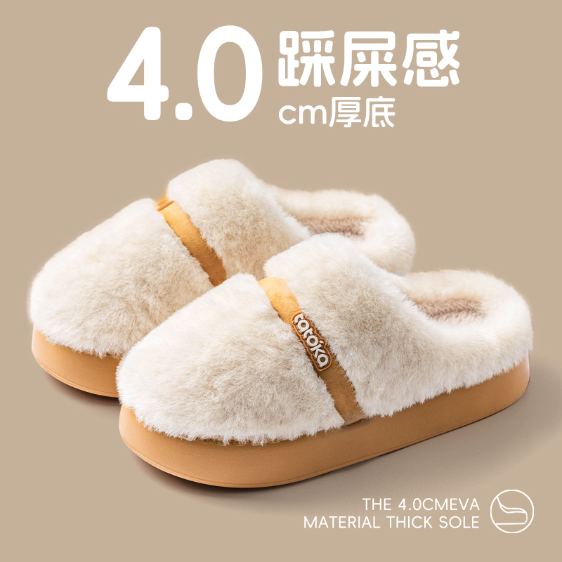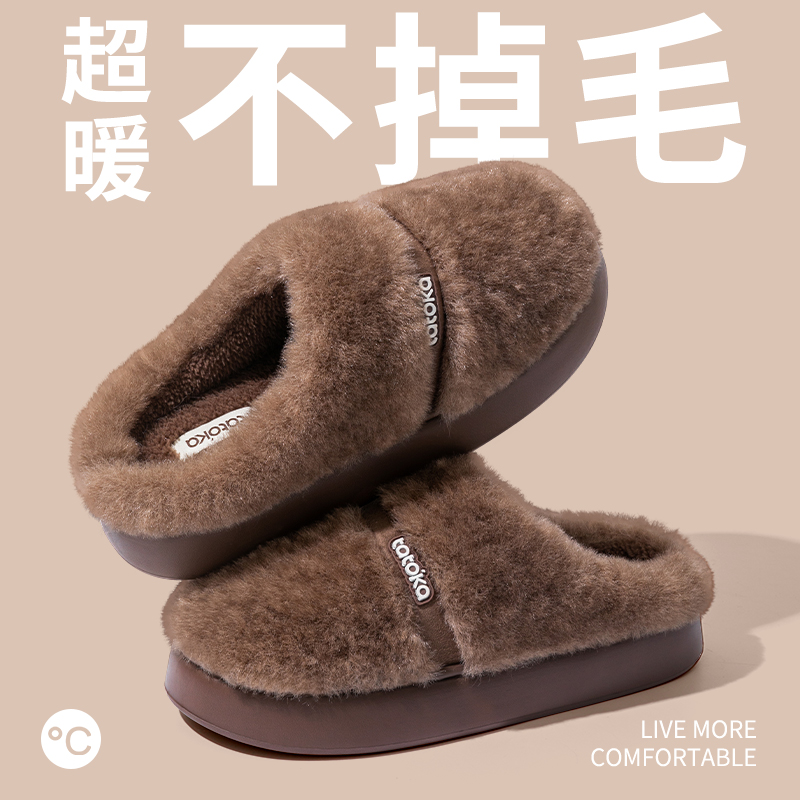 女多规格 室内居家加绒保暖防滑情侣棉鞋 厚底棉拖鞋 男秋冬季