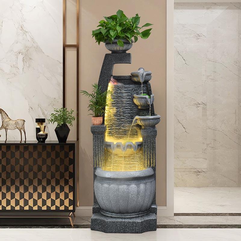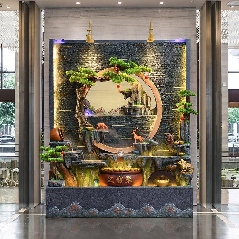 流水喷泉招财风水轮水幕墙落地加湿器摆件客厅家居装 饰品开业乔迁