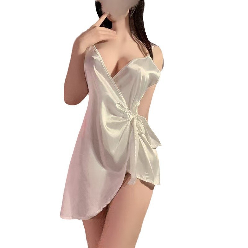 情趣睡衣性感气质缎面系带吊带睡裙V领夏季 冰丝裙诱惑火辣纯欲裙