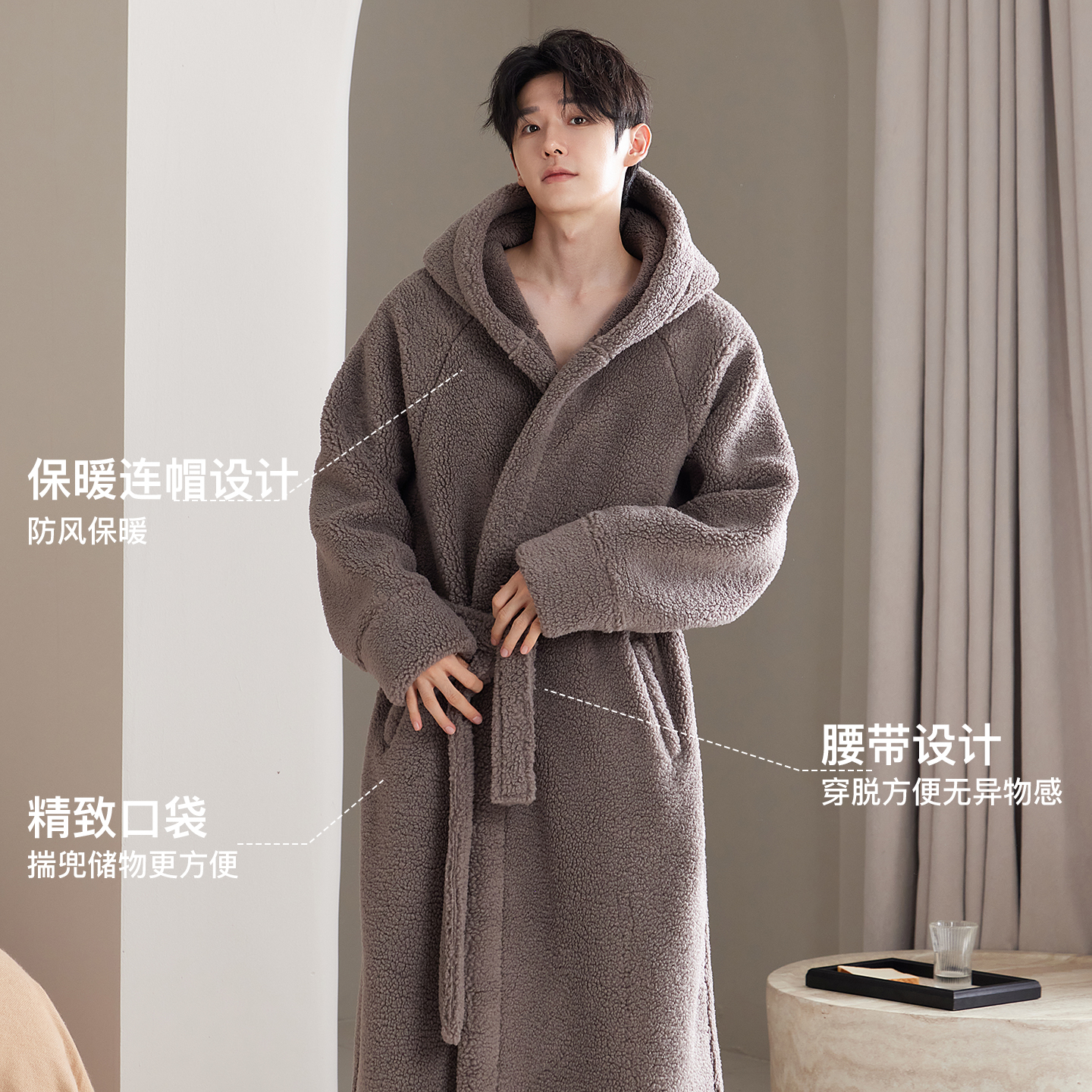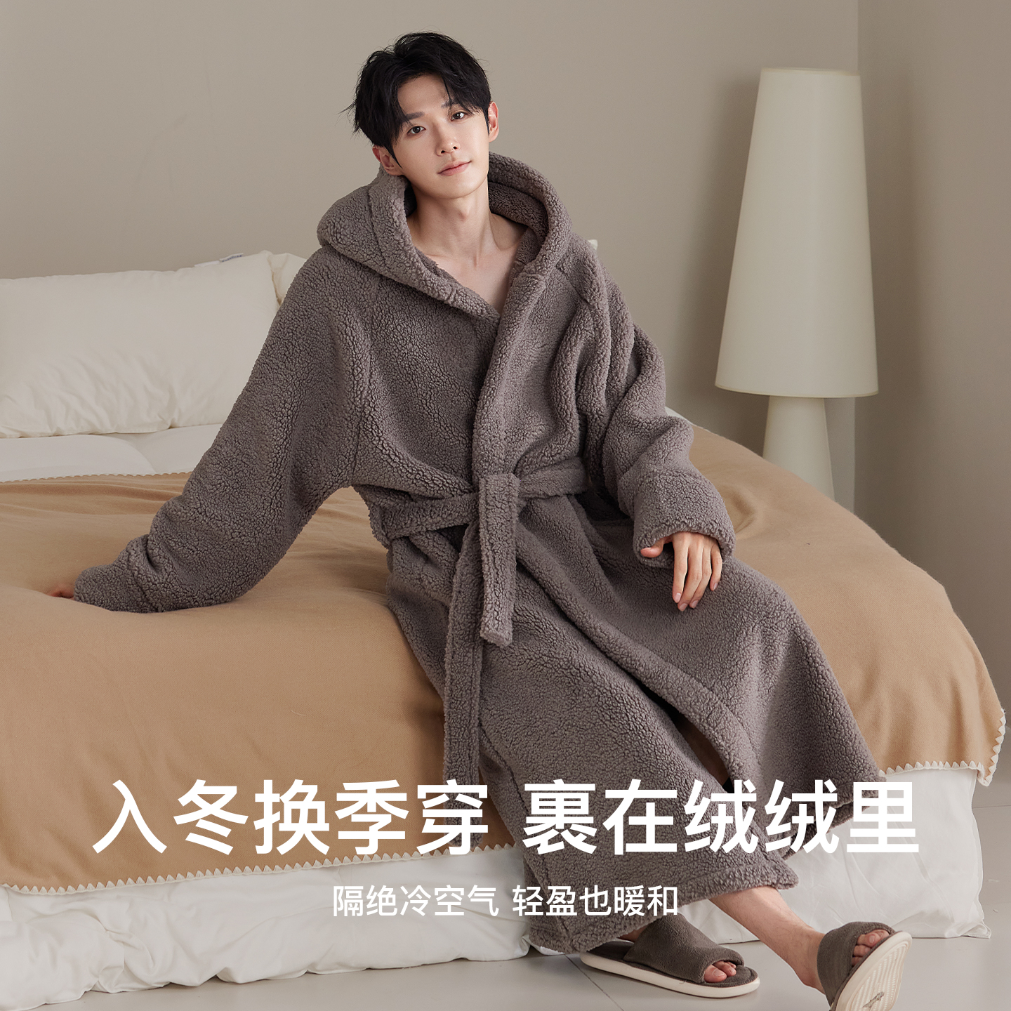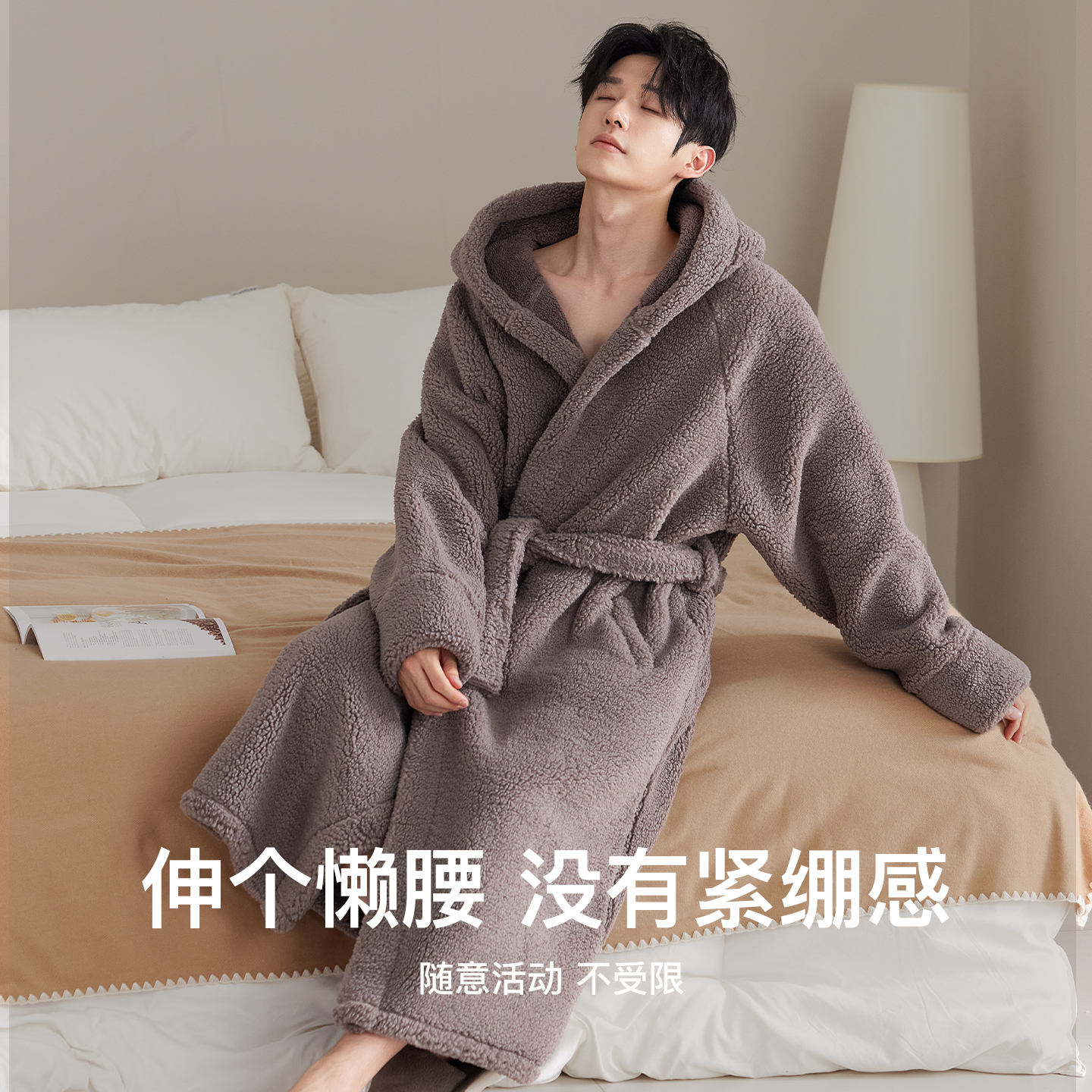 加绒加厚珊瑚绒加大码 睡袍男士 浴袍男款 加长款 巨保暖睡衣 秋冬季