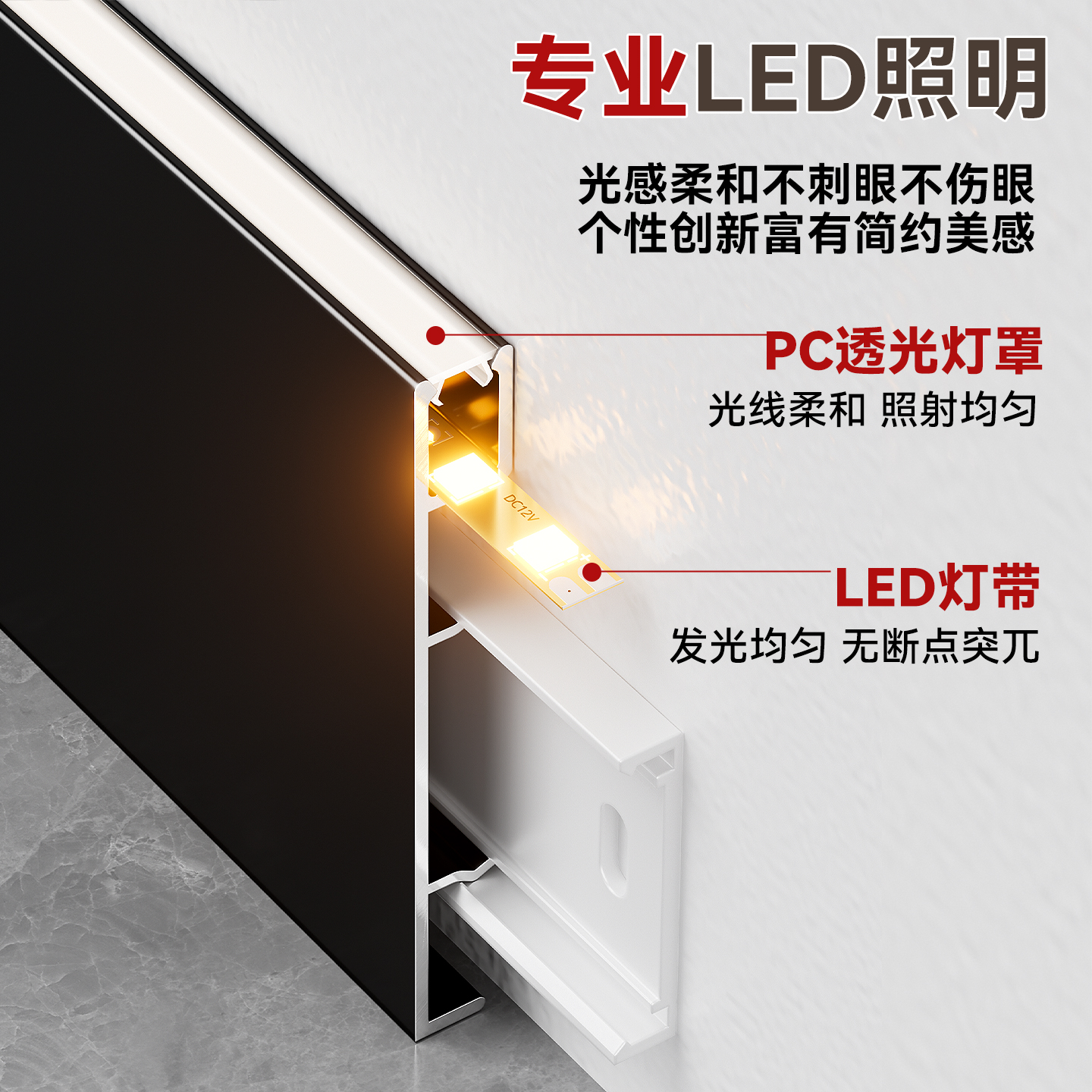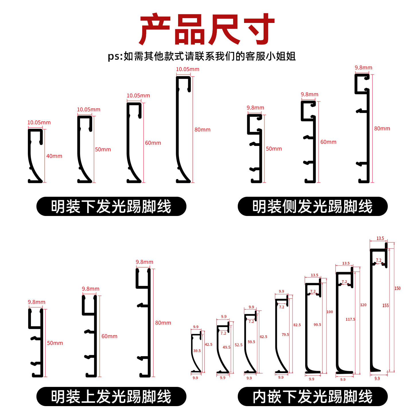 铝合金踢脚线卡扣式 全铝贴脚线条6cm8cm不锈钢超薄极简金属地脚线