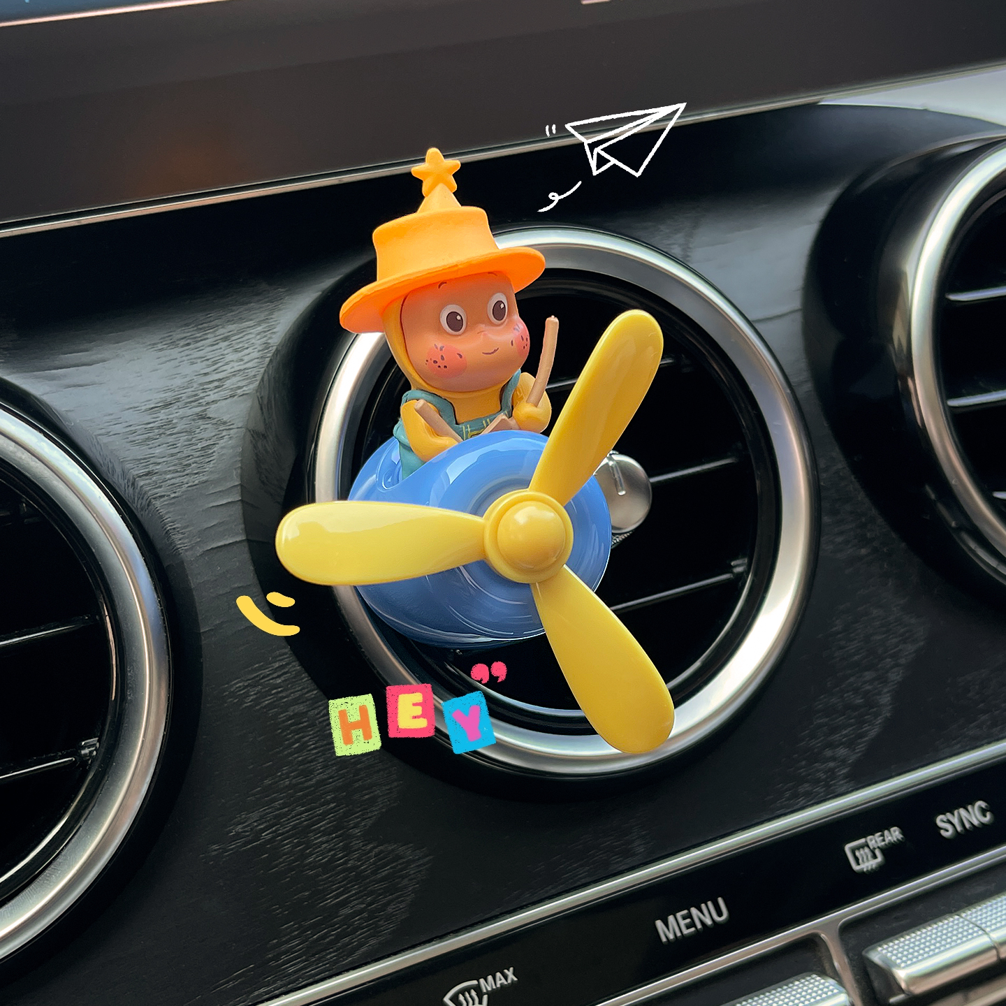 飞行员车载香薰汽车香水空调出风口夹装 车内饰品摆件女 饰风扇新款