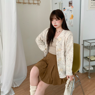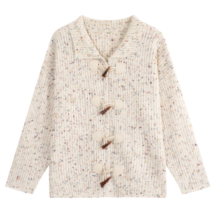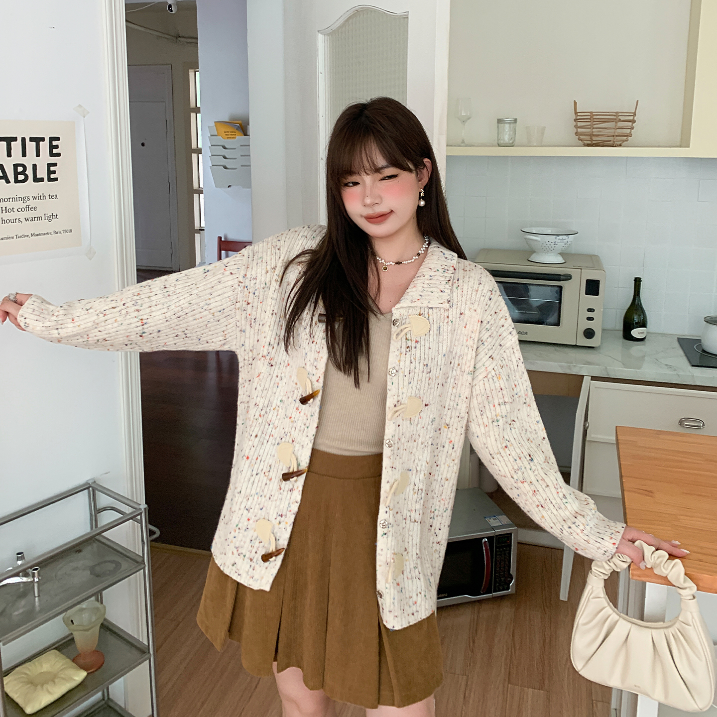 YUZI鱼子开衫 显瘦遮肉胖mm 外套波点牛角扣毛衣女韩系复古秋冬大码