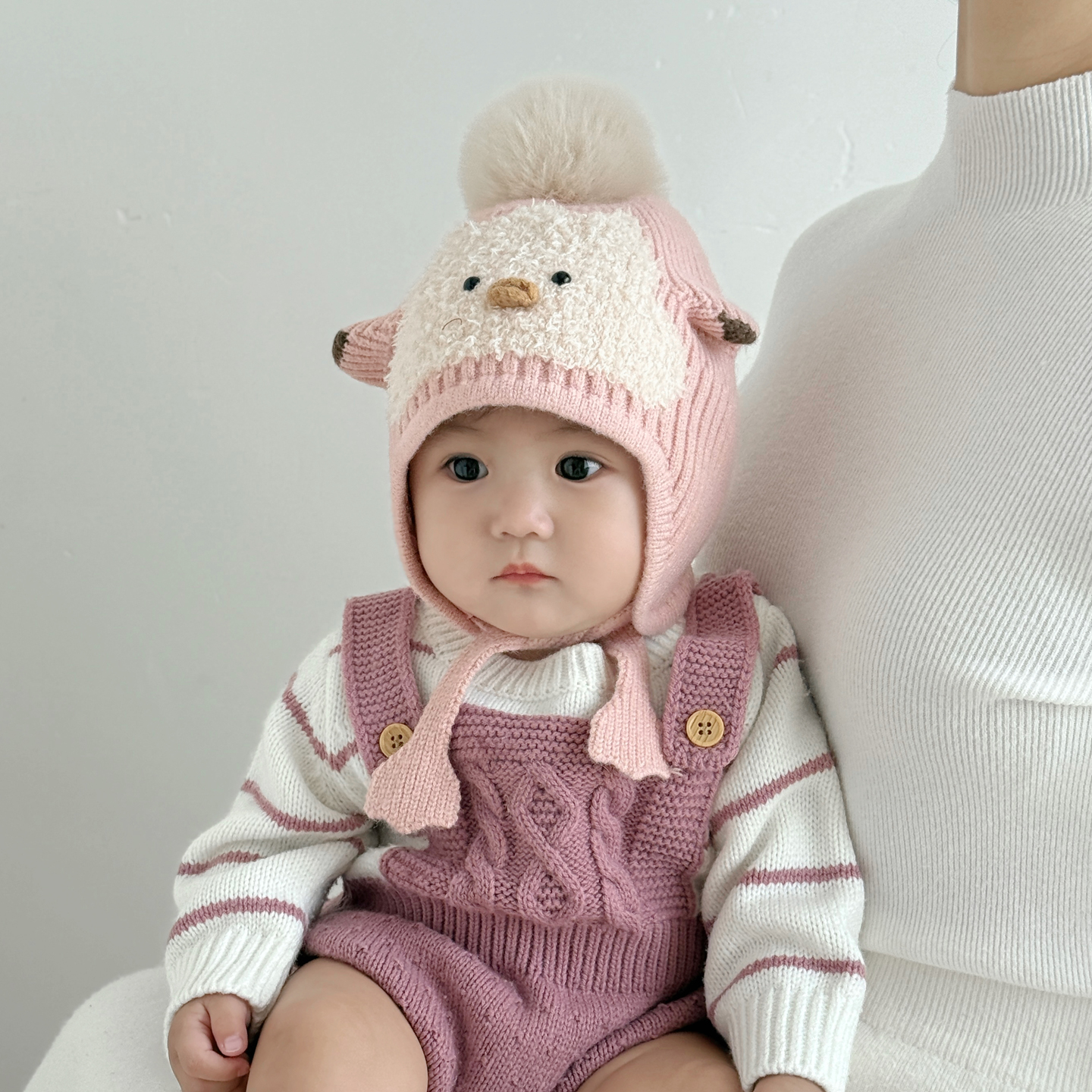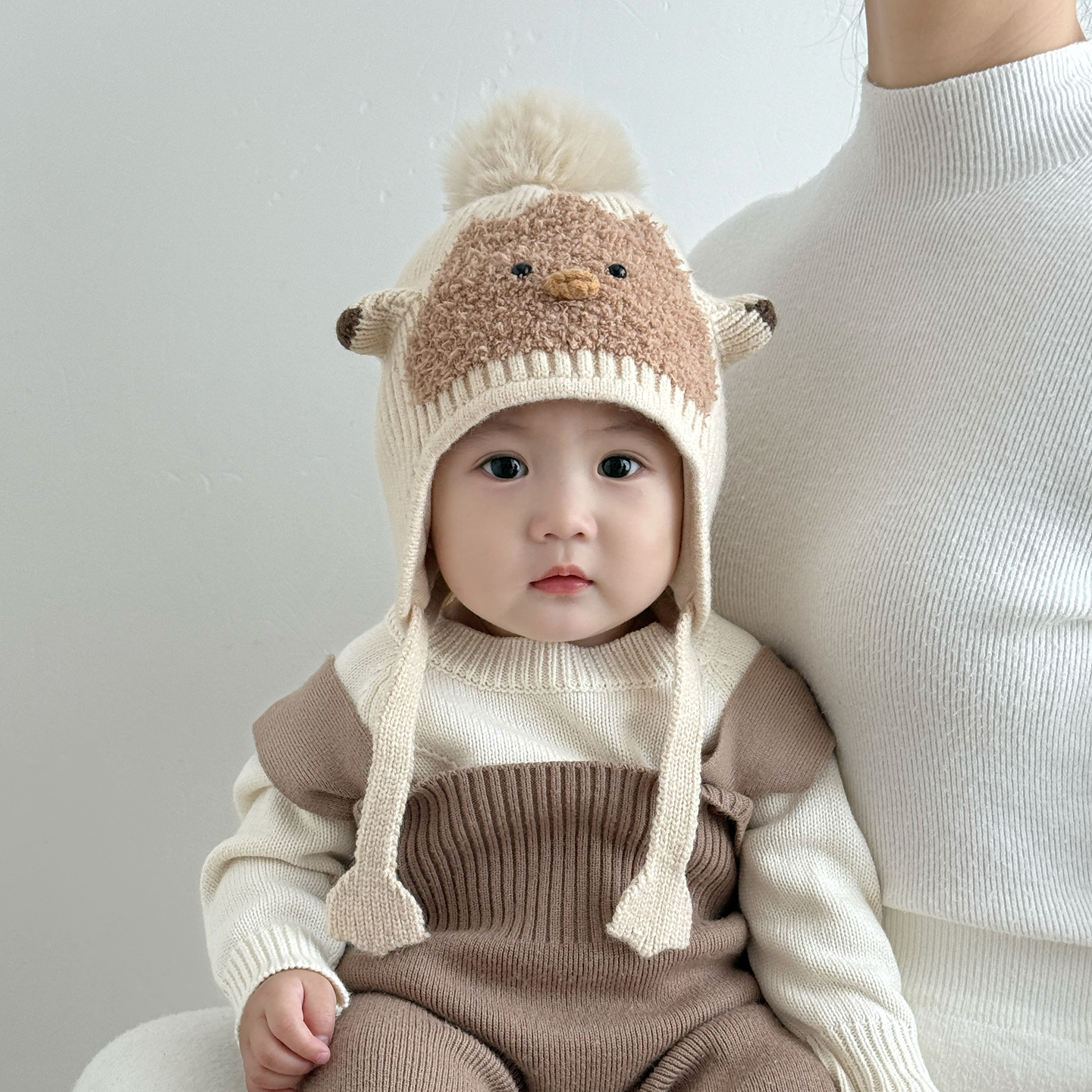 婴儿宝宝帽子春秋字母男女保暖套头帽韩版 婴儿针织毛线帽秋冬 新款