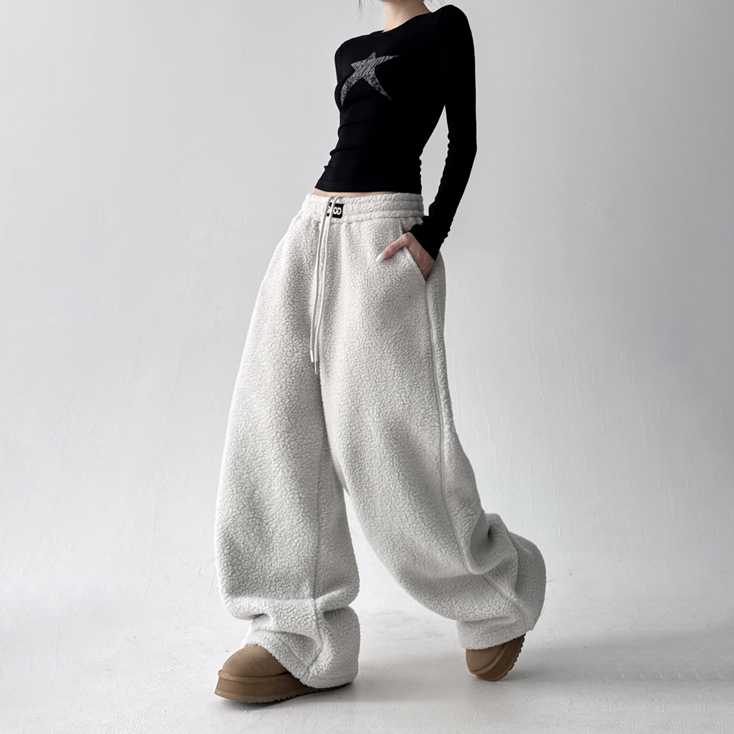 高级宽松bf慵懒垂感直筒加绒休闲阔腿裤 2025新款 子女春秋季 糯米裤