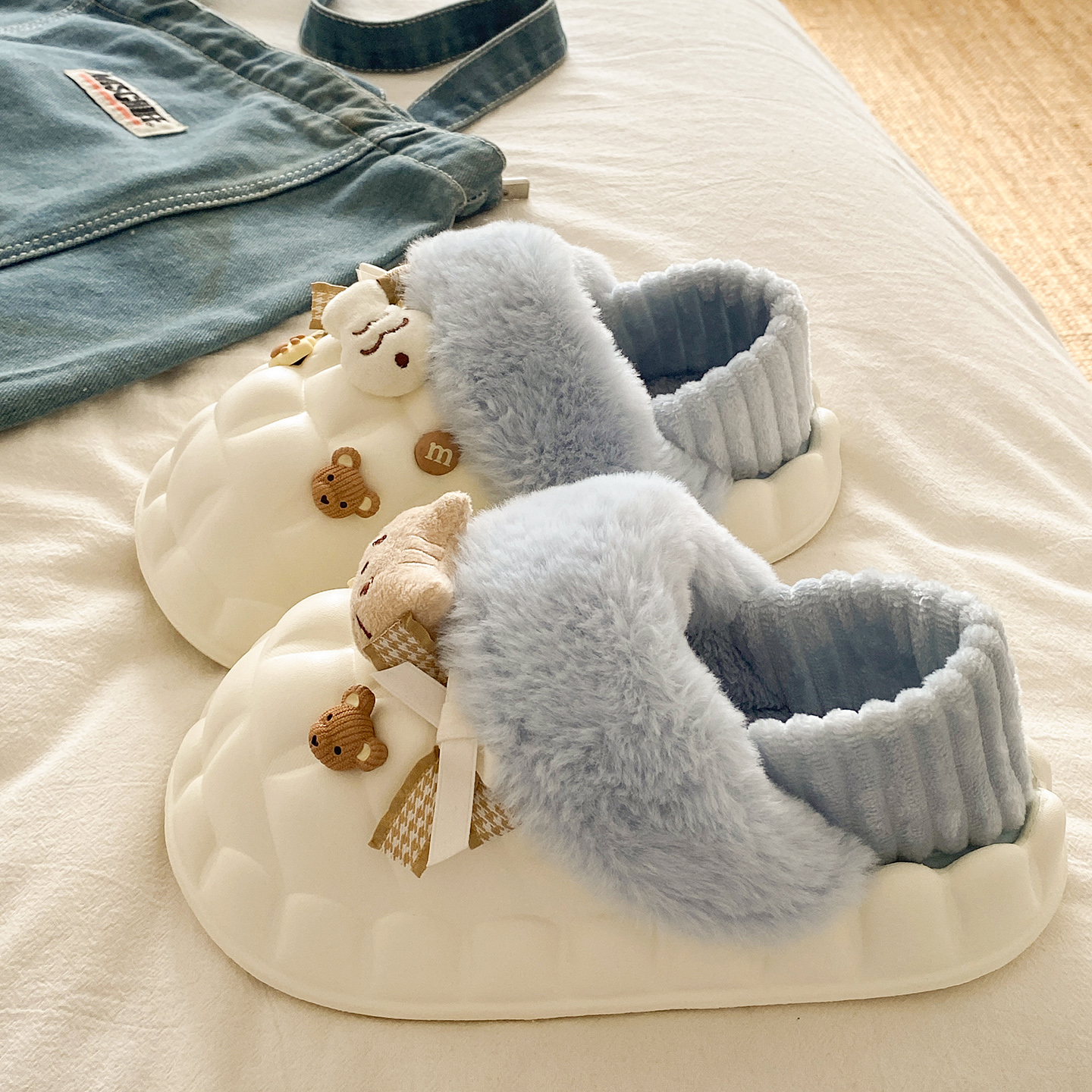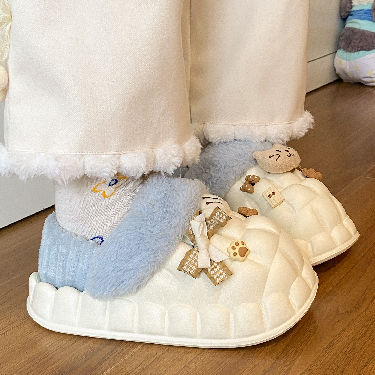 室内家居防滑加绒保暖外穿包跟棉鞋 女2025新款 冬季 可爱猫鱼棉拖鞋