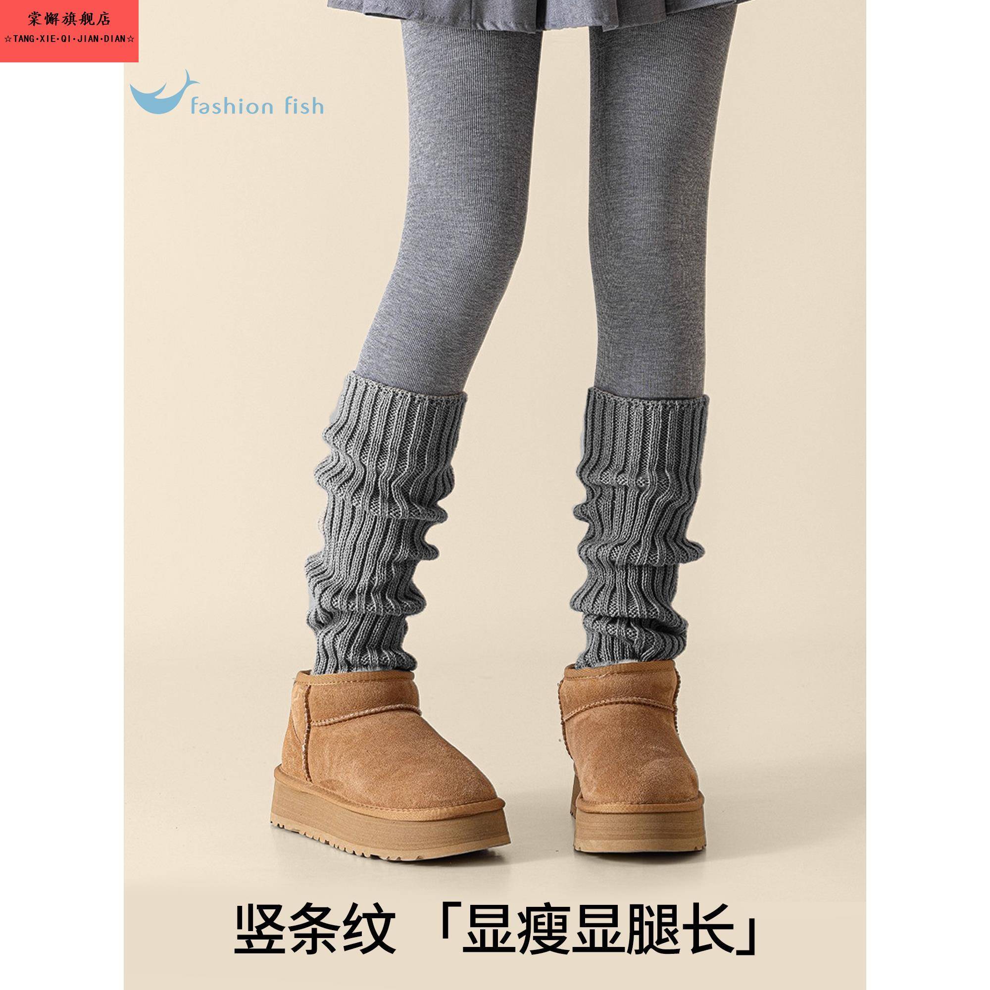 压力小腿袜女半腿jk风中筒堆堆袜配靴子长靴小皮鞋 灰色春秋长筒袜