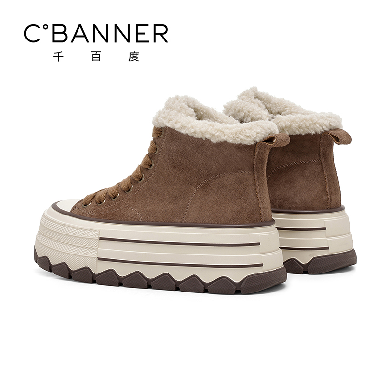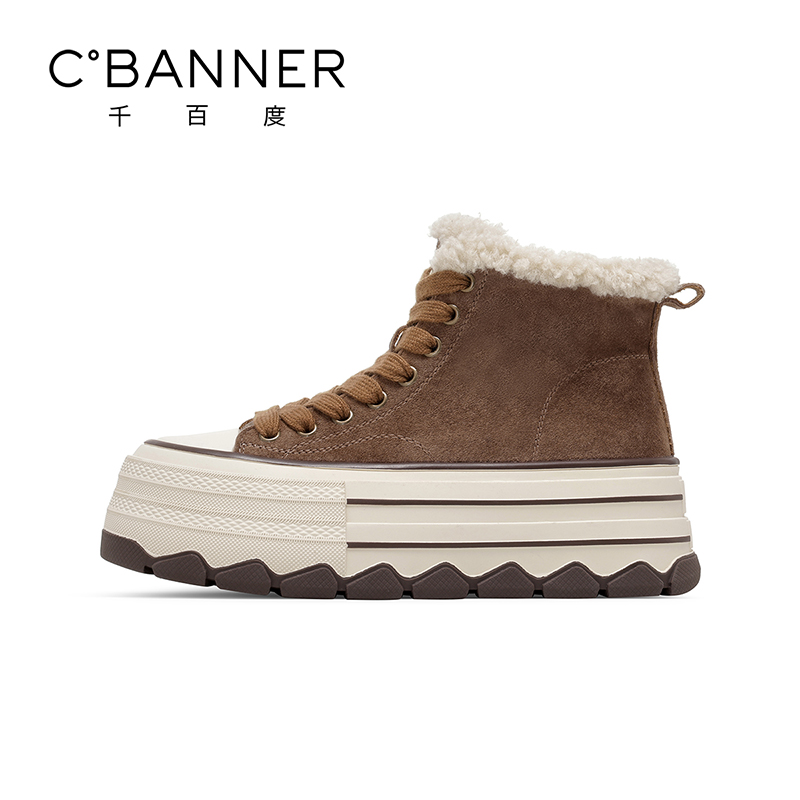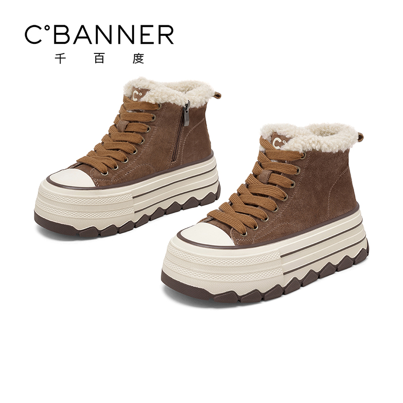 双层厚底加绒保暖舒适百搭休闲板鞋 新款 女2024冬季 千百度高帮棉鞋
