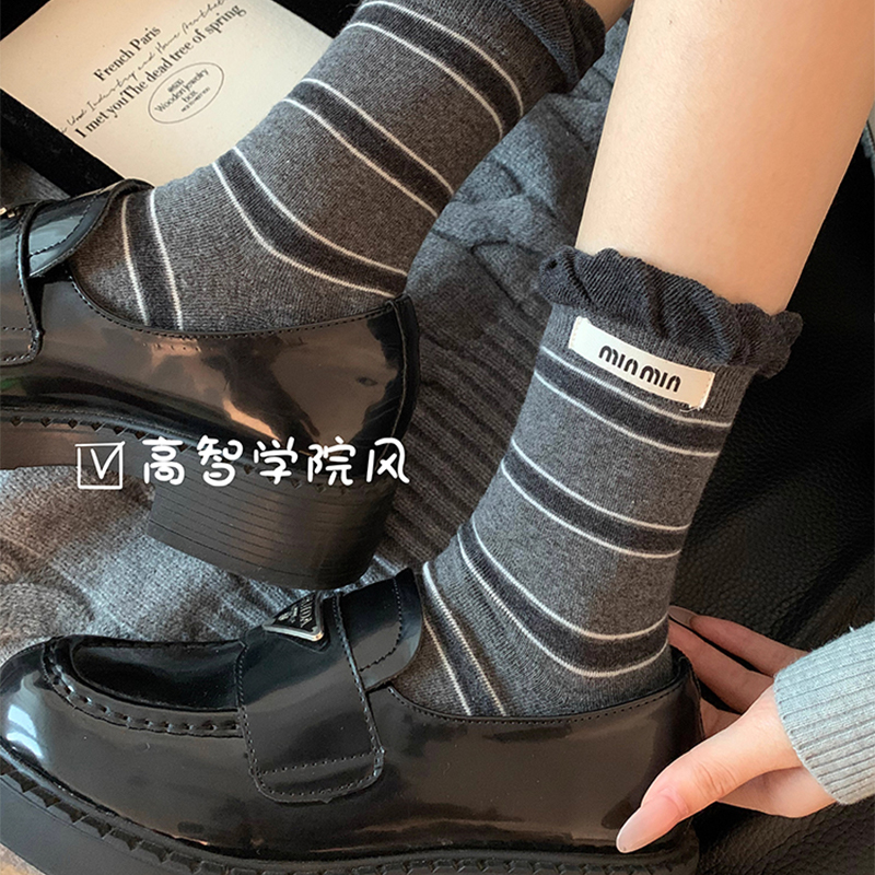乐福鞋 黑色袜子女中筒纯棉秋冬季 堆堆长袜搭配小皮鞋 爆款 2025新款