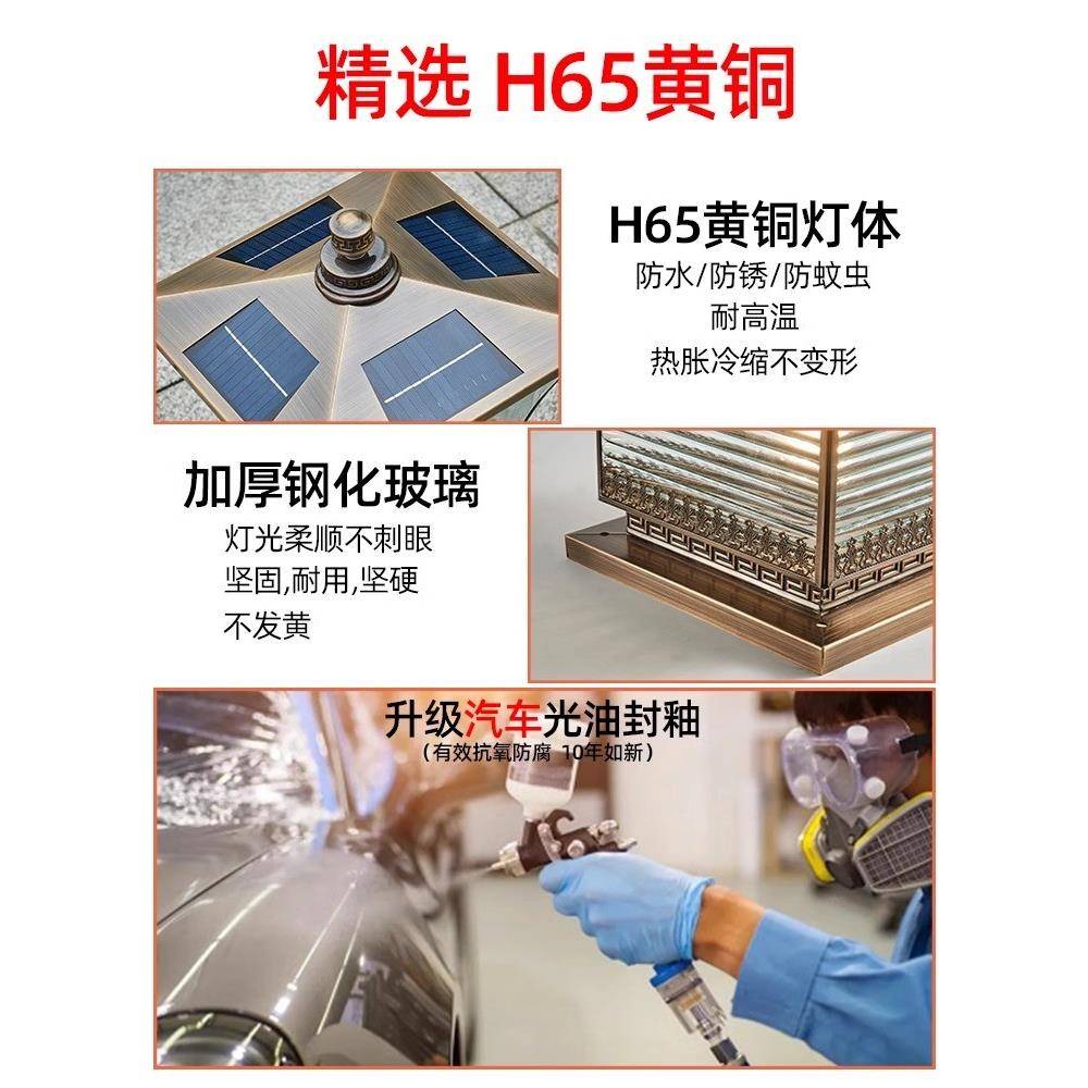 全铜太阳能柱头灯室外防水庭院灯别墅花园简约大门灯柱子灯门柱灯