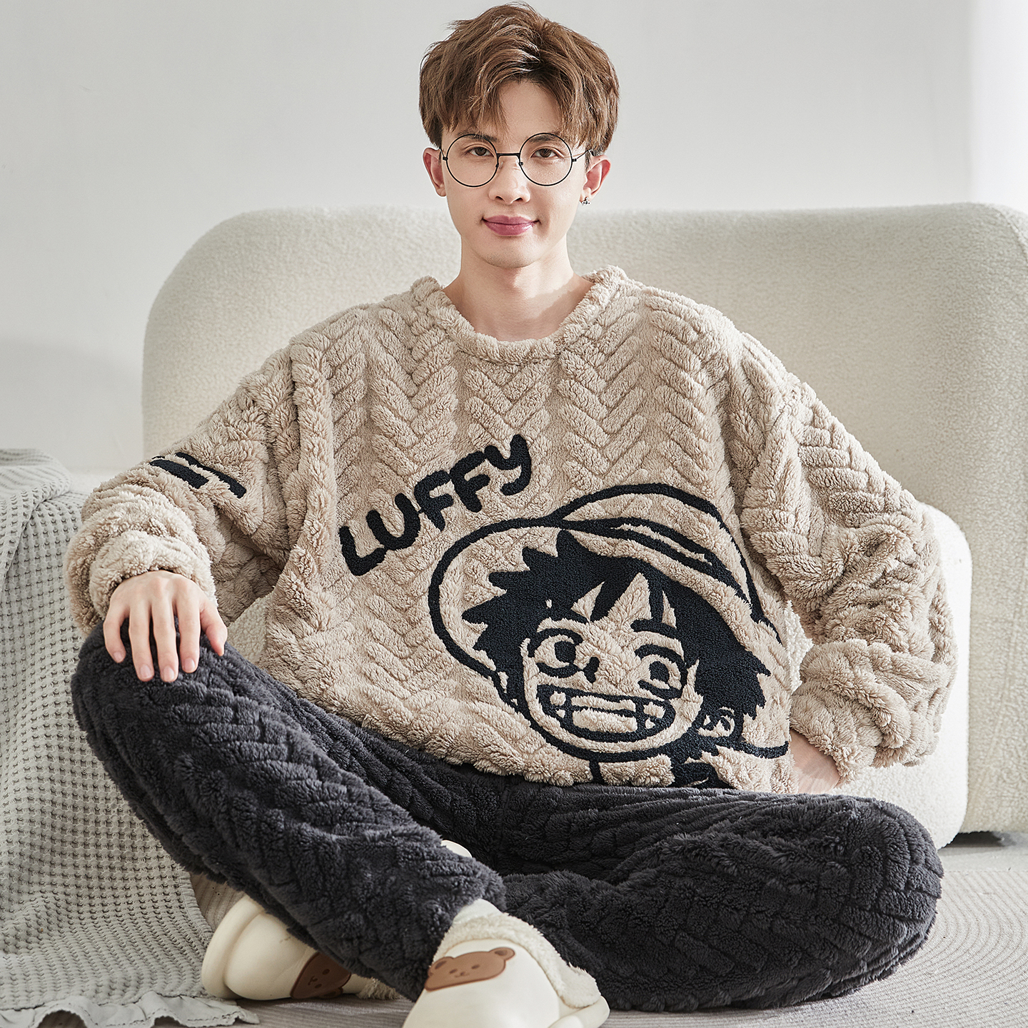 女款 家居服套装 加厚大码 秋冬款 法兰绒男士 芬腾珊瑚绒情侣睡衣冬季