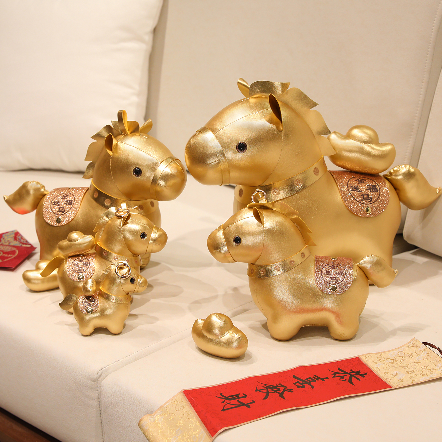金马送财马年吉祥物生肖马毛绒玩具新年公司活动礼品金元 宝马公仔