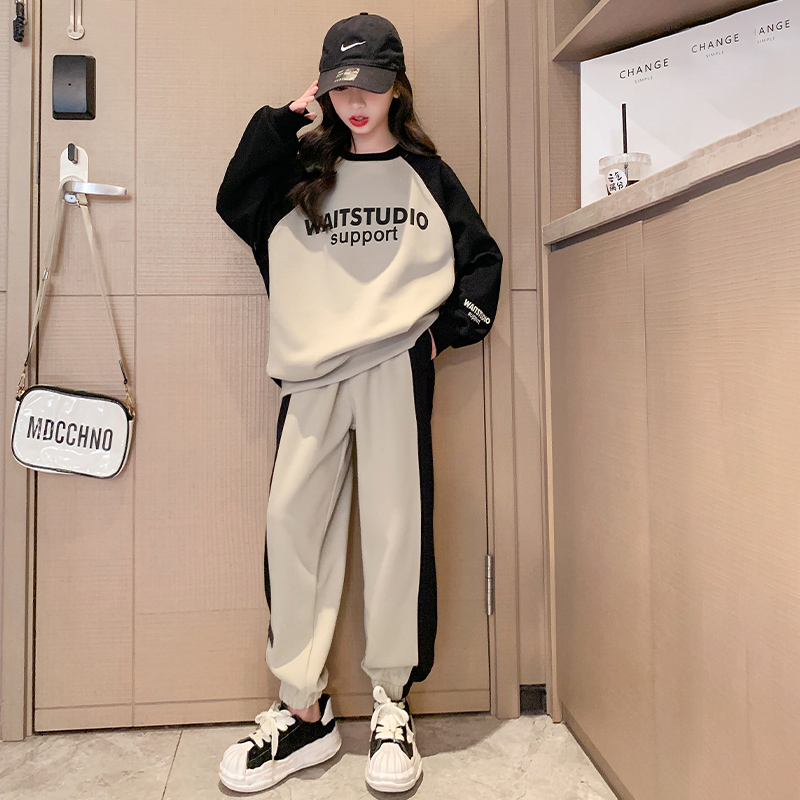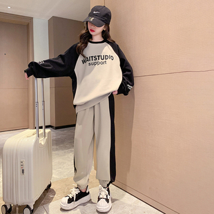 儿童洋气时髦卫衣中大童春秋加绒两件套 2025新款 女童秋装 运动套装