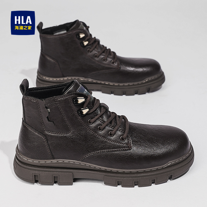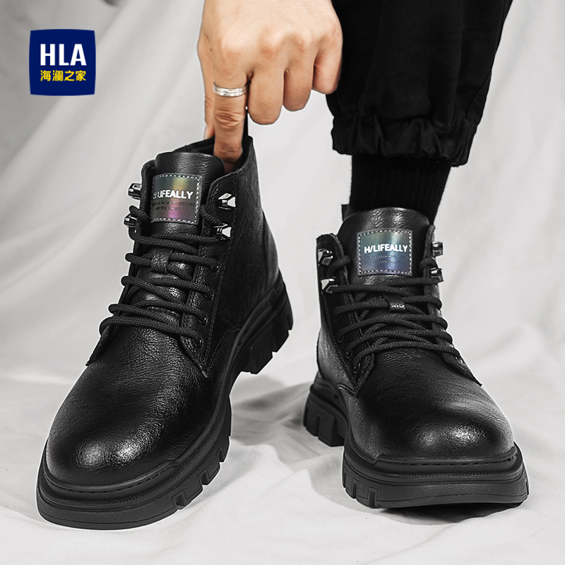 冬季 加绒靴子百搭高帮休闲皮鞋 男鞋 潮流男士 韩版 马丁靴男2025新款