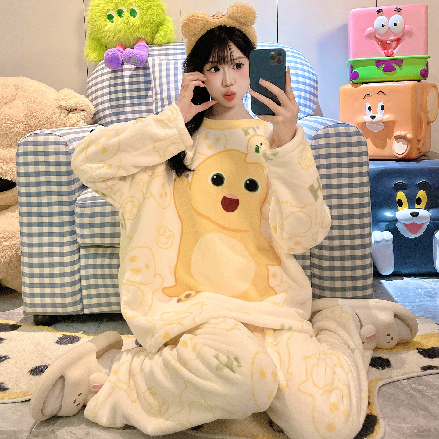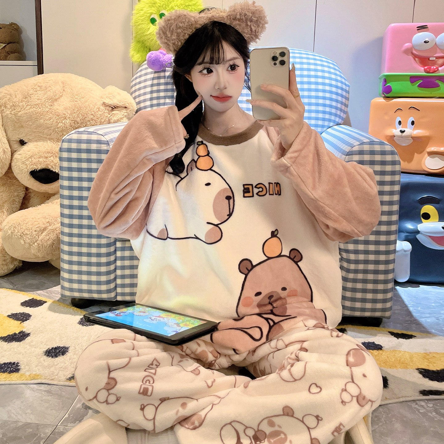 保暖甜美法兰绒卡通KT猫初中学生家居服套装 珊瑚绒睡衣女款 秋冬季